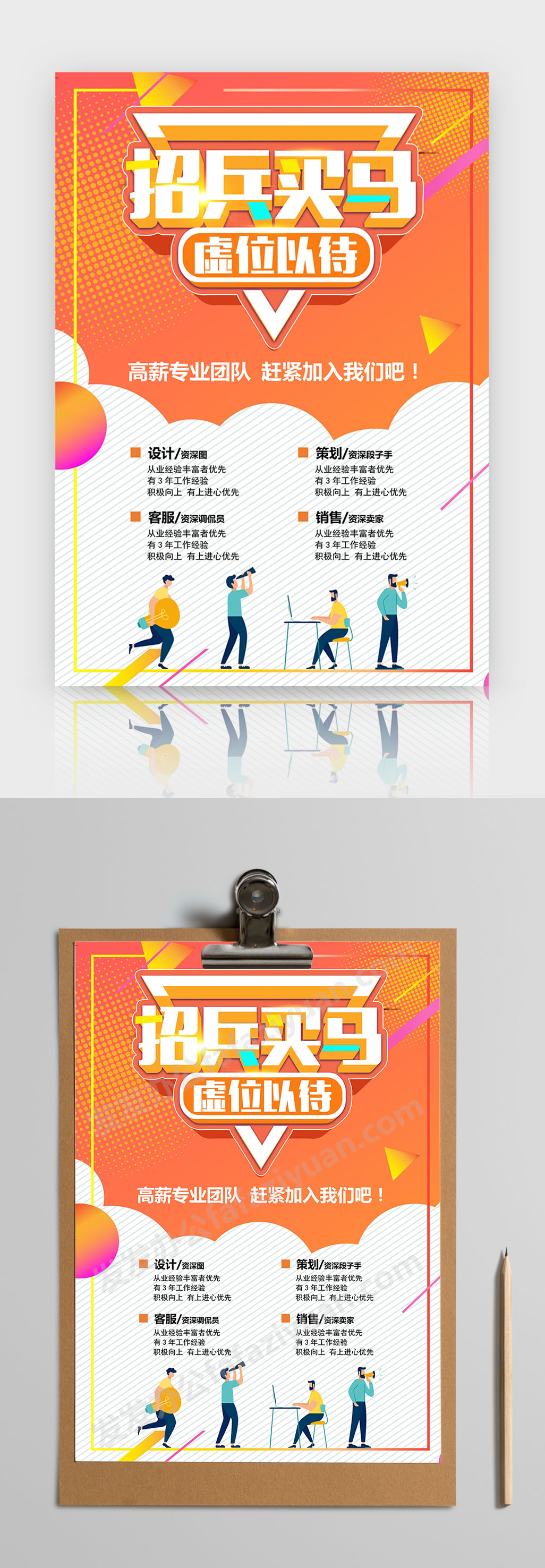 本作品内容为招兵买马虚位以待橙色招聘海报Word海报模板, 格式为 docx, 大小1 MB, 页数为1, 请使用软件Word打开, 作品中主体文字及图片可替换修改,文字修改可直接点击文本框进行编辑,图片更改可选中图片后单击鼠标右键选择更换图片,也可根据自身需求增加和删除作品中的内容, 源文件无水印, 欢迎使用发发资源库。 资源下载此资源下载价格为8.8F币,VIP免费,请先登录