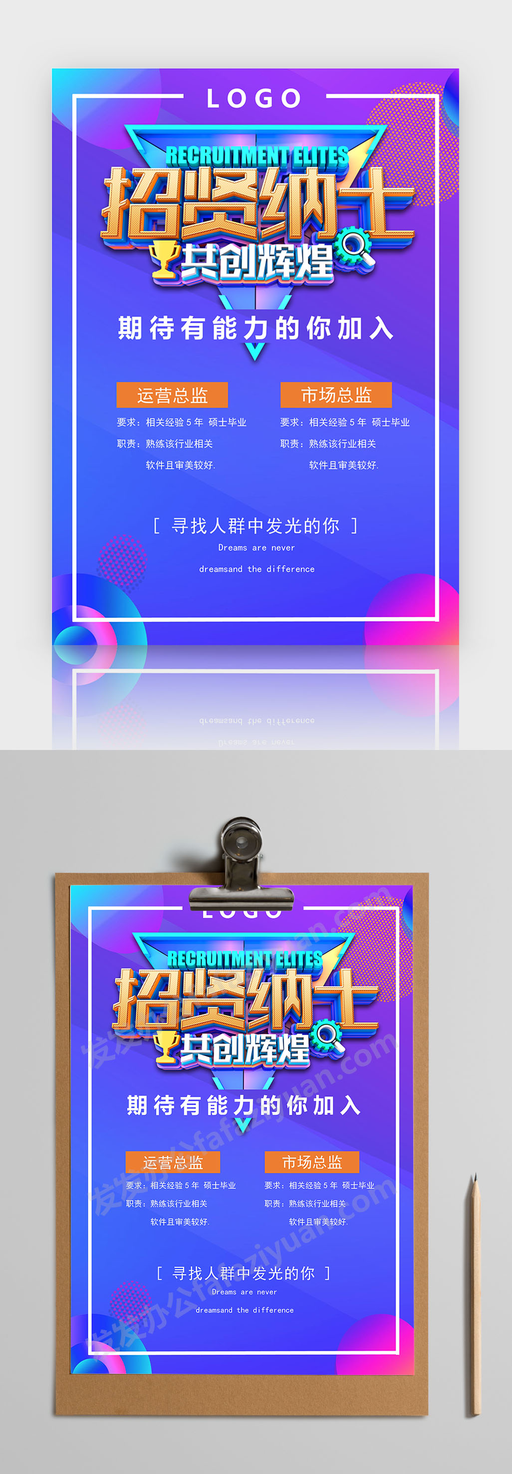 本作品内容为招贤纳士共创辉煌蓝色商务通用招聘海报Word海报模板, 格式为 docx, 大小1 MB, 页数为1, 请使用软件Word打开, 作品中主体文字及图片可替换修改,文字修改可直接点击文本框进行编辑,图片更改可选中图片后单击鼠标右键选择更换图片,也可根据自身需求增加和删除作品中的内容, 源文件无水印, 欢迎使用发发资源库。 资源下载此资源下载价格为8.8F币,VIP免费,请先登录