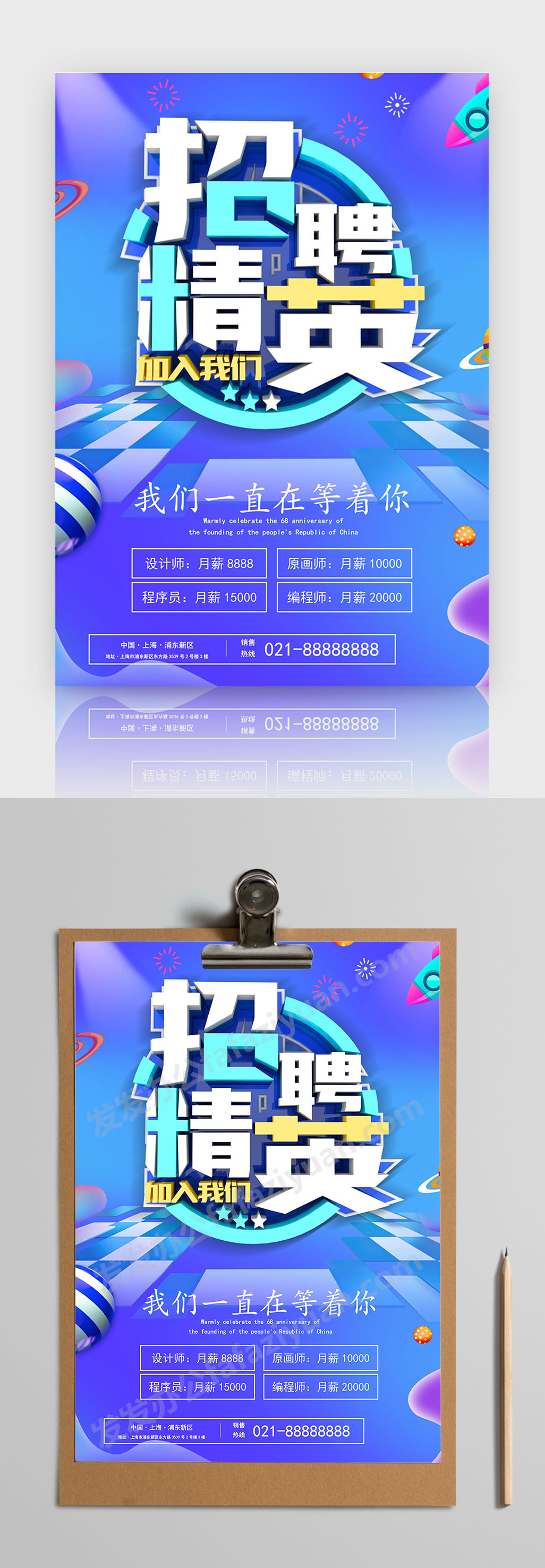 本作品内容为招聘精英加入我们蓝色设计创意类招聘海报Word海报模板, 格式为 docx, 大小1 MB, 页数为1, 请使用软件Word打开, 作品中主体文字及图片可替换修改,文字修改可直接点击文本框进行编辑,图片更改可选中图片后单击鼠标右键选择更换图片,也可根据自身需求增加和删除作品中的内容, 源文件无水印, 欢迎使用发发资源库。 资源下载此资源下载价格为8.8F币,VIP免费,请先登录