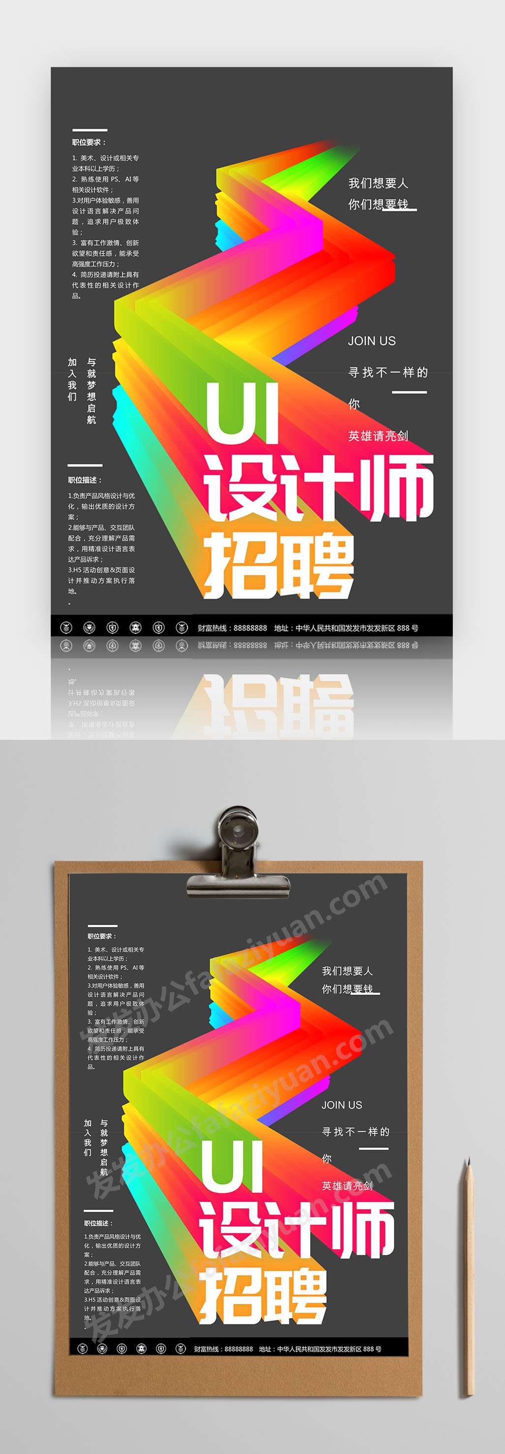 本作品内容为创意UI设计师招聘海报Word海报模板, 格式为 docx, 大小1 MB, 页数为1, 请使用软件Word打开, 作品中主体文字及图片可替换修改,文字修改可直接点击文本框进行编辑,图片更改可选中图片后单击鼠标右键选择更换图片,也可根据自身需求增加和删除作品中的内容, 源文件无水印, 欢迎使用发发资源库。