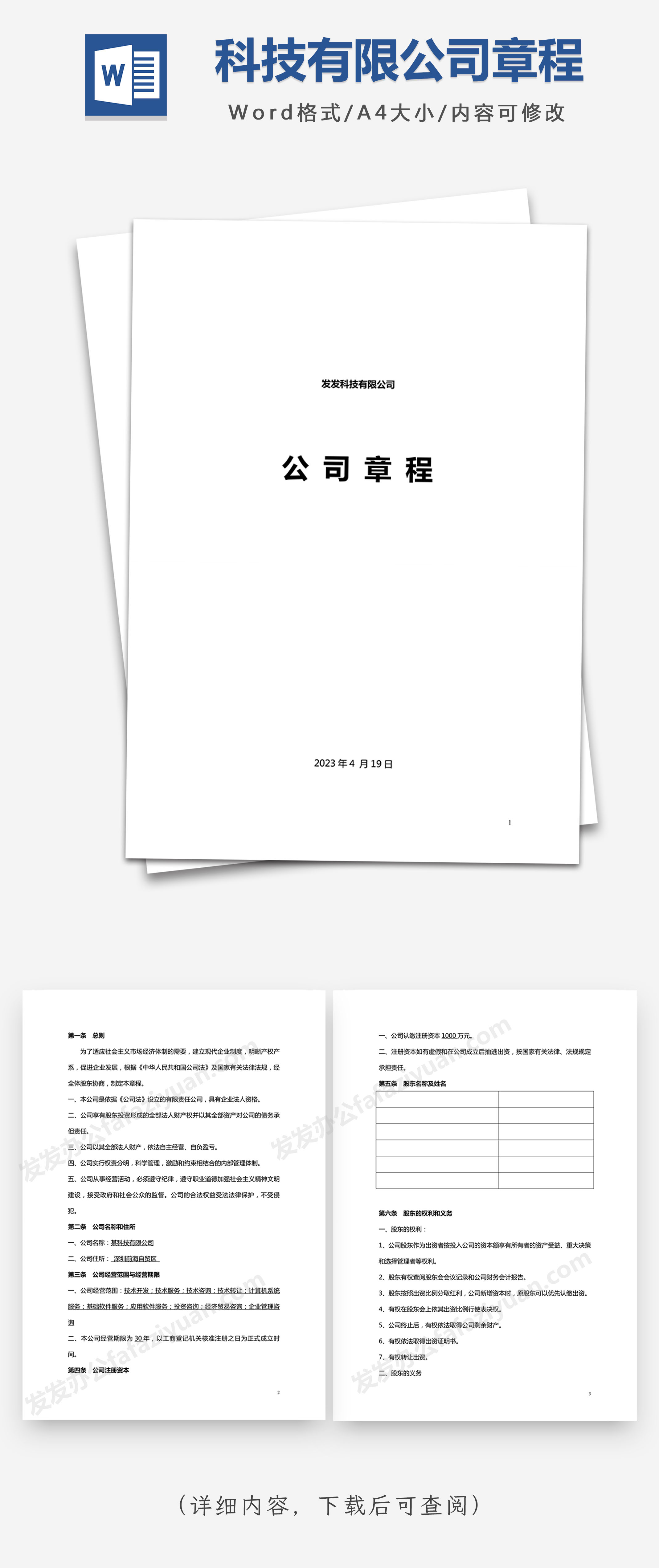 本作品内容为科技有限公司章程Word模板, 格式为 docx, 大小1MB, 页数为14, 请使用软件Word打开, 作品中主体文字及图片可替换修改,文字修改可直接点击文本框进行编辑,图片更改可选中图片后单击鼠标右键选择更换图片,也可根据自身需求增加和删除作品中的内容, 源文件无水印, 欢迎使用发发资源库。