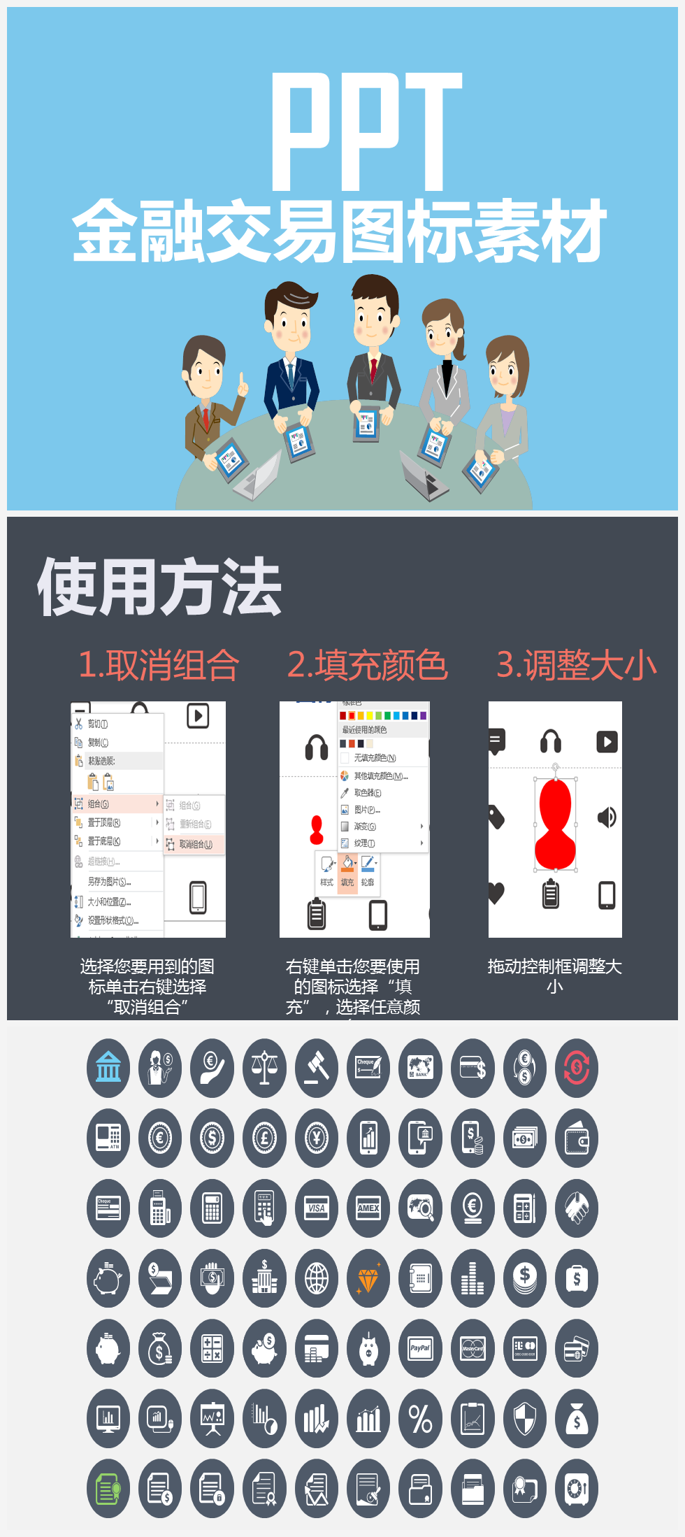 作品内容为商务金融交易钱币图标元素大全PPT小图标PPT素材, 格式为 pptx,大小0.4MB, 页数为3,请使用软件PowerPoint打开,作品中PNG图片为免抠图片,源文件无水印,可以直接使用,欢迎使用发发资源库。