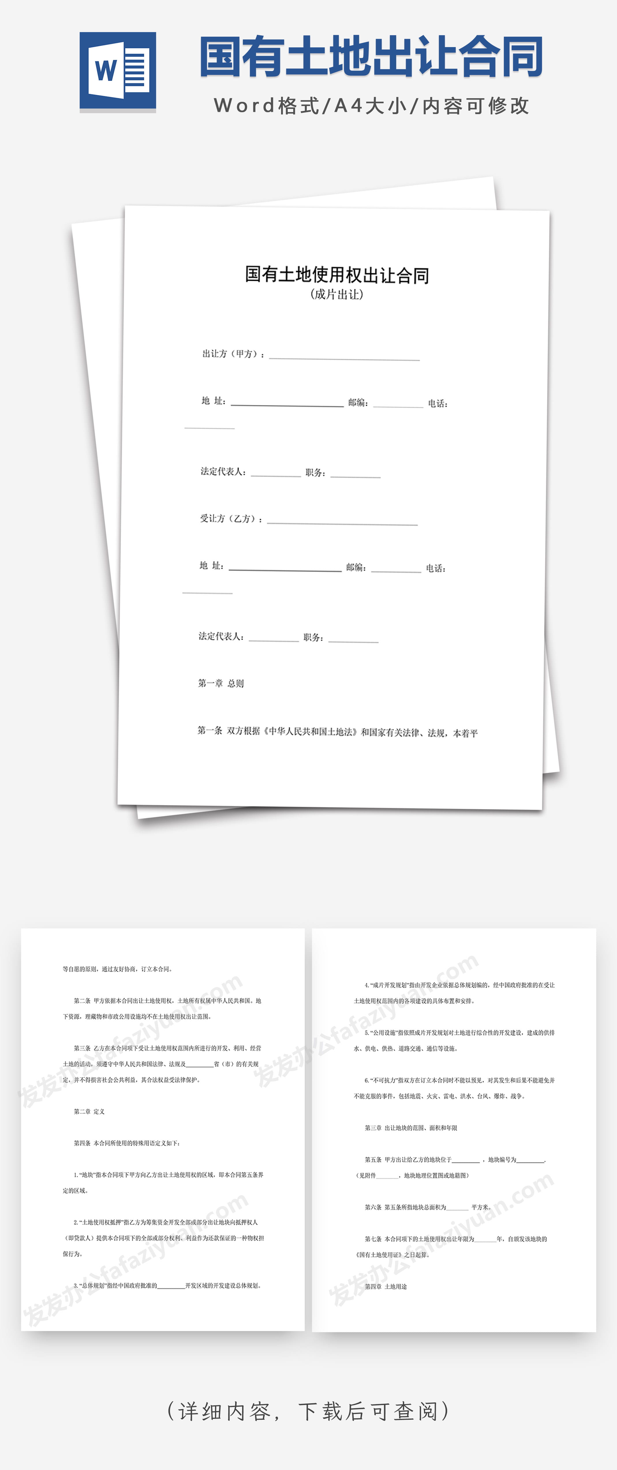 本作品内容为国有土地使用权出让合同3Word合同模板, 格式为 docx, 大小1 MB, 页数为13, 请使用软件Word打开, 作品中主体文字及图片可替换修改,文字修改可直接点击文本框进行编辑,图片更改可选中图片后单击鼠标右键选择更换图片,也可根据自身需求增加和删除作品中的内容, 源文件无水印, 欢迎使用发发资源库。