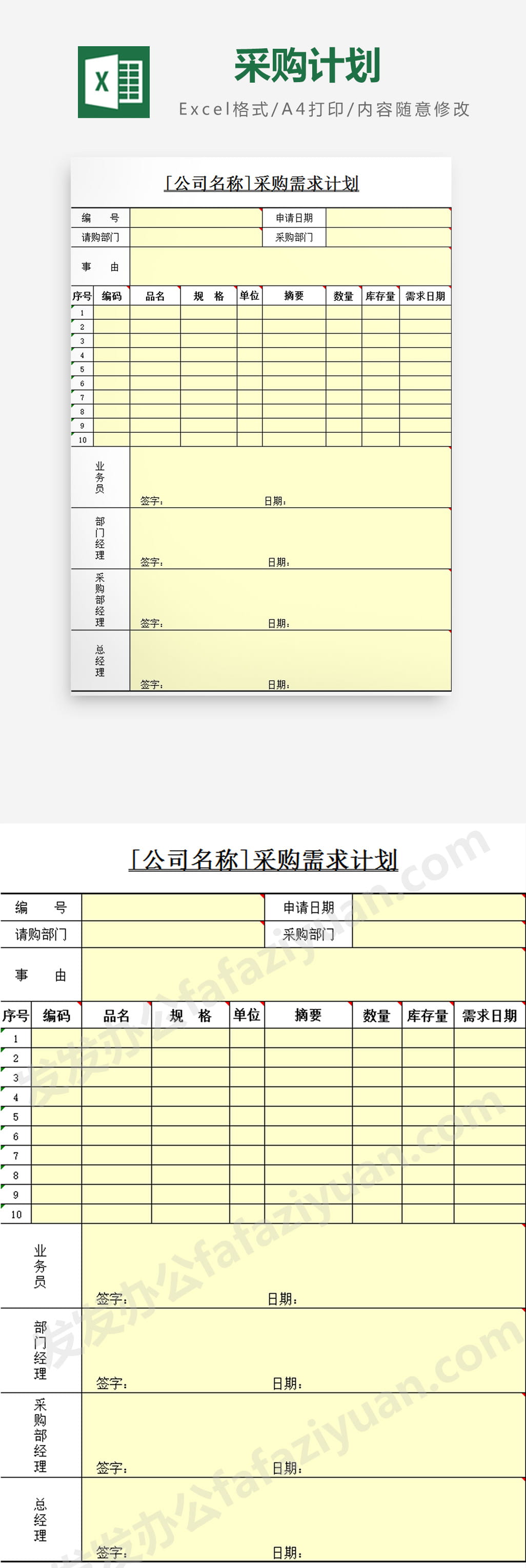 作品内容为采购计划Excel表格, 格式为 xlsx, 大小1MB,下载后可直接使用, 请使用软件Excel打开, 作品中主体文字及图片可替换修改,文字修改可直接点击文本框进行编辑,图片更改可选中图片后单击鼠标右键选择更换图片,也可根据自身需求增加和删除作品中的内容, 源文件无水印, 欢迎使用发发资源库。