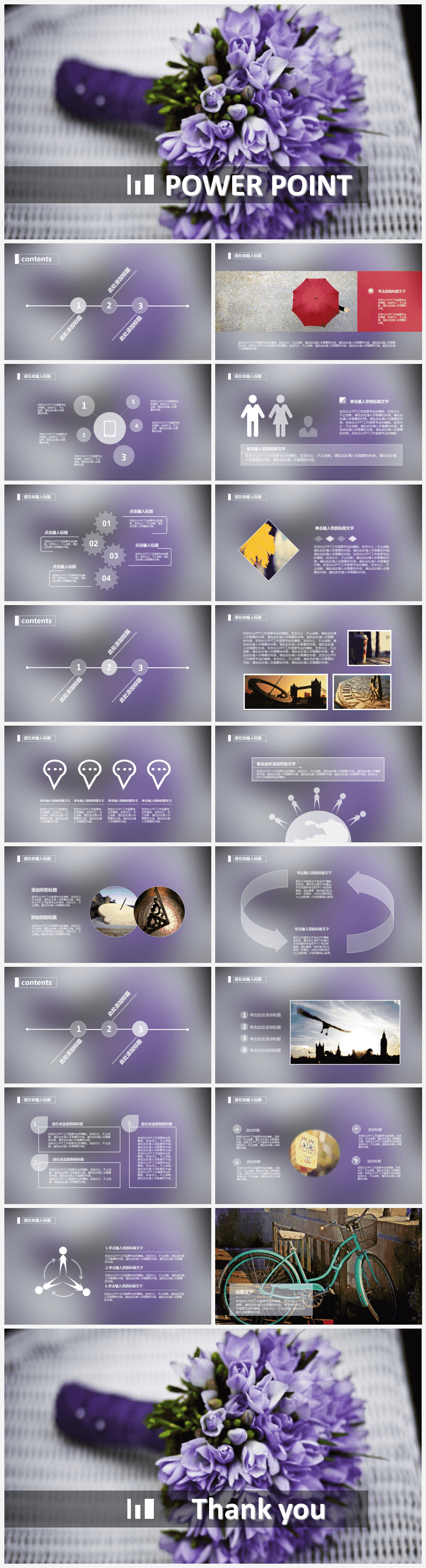 本作品内容为紫色简约风公司介绍PPT模板下载。 格式为 ppt, 大小5.27MB, 页数为20,比例16:9, 请使用软件PowerPoint打开, 作品中主体文字及图片可替换修改,文字修改可直接点击文本框进行编辑,图片更改可选中图片后单击鼠标右键选择更换图片,也可根据自身需求增加和删除作品中的内容, 源文件无水印, 欢迎使用发发资源库。