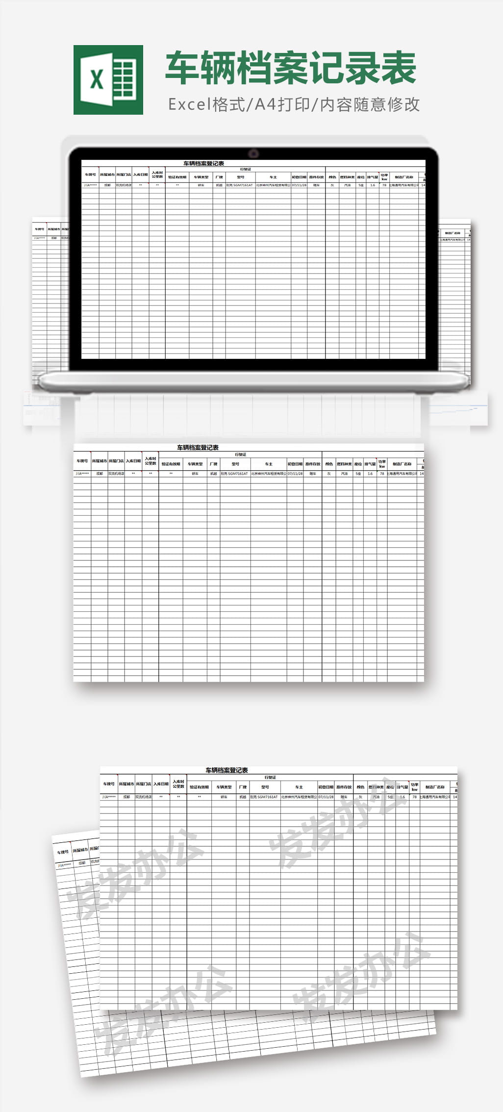 作品内容为车辆档案记录表, 格式为 xlsx, 大小1MB,下载后可直接使用, 请使用软件Excel打开, 作品中主体文字及图片可替换修改,文字修改可直接点击文本框进行编辑,图片更改可选中图片后单击鼠标右键选择更换图片,也可根据自身需求增加和删除作品中的内容, 源文件无水印, 欢迎使用发发资源库。
