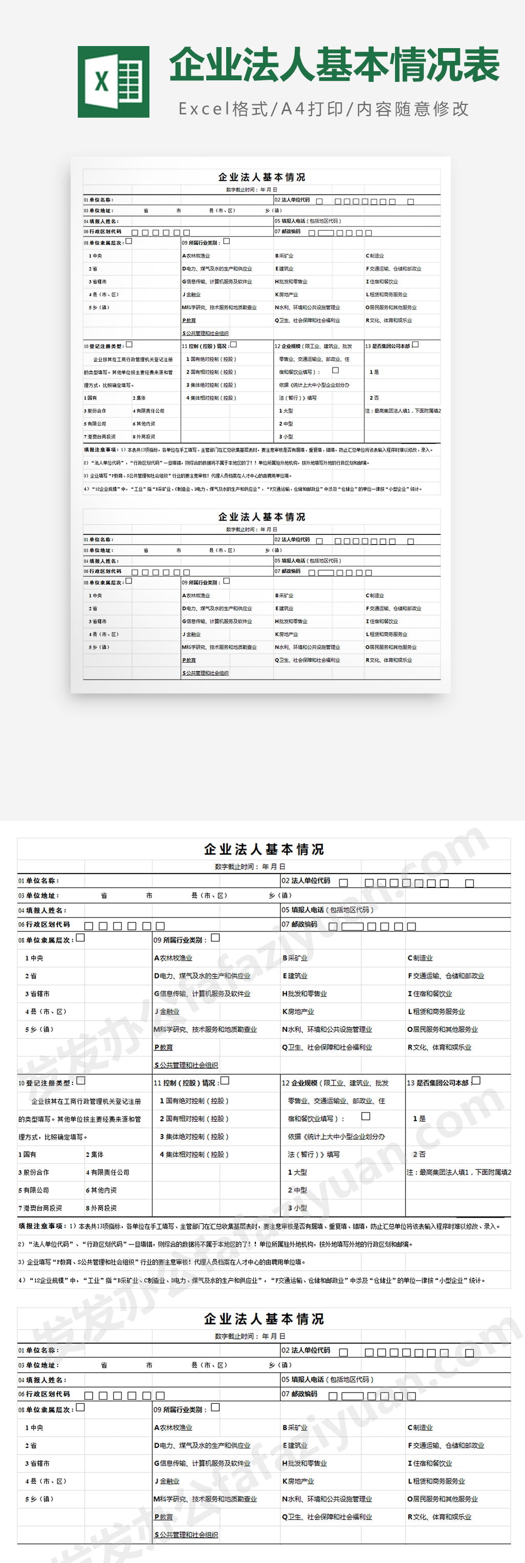作品内容为企业法人基本情况表, 格式为 xlsx, 大小1MB,下载后可直接使用, 请使用软件Excel打开, 作品中主体文字及图片可替换修改,文字修改可直接点击文本框进行编辑,图片更改可选中图片后单击鼠标右键选择更换图片,也可根据自身需求增加和删除作品中的内容, 源文件无水印, 欢迎使用发发资源库。 资源下载此资源下载价格为8.8F币,VIP免费,请先登录