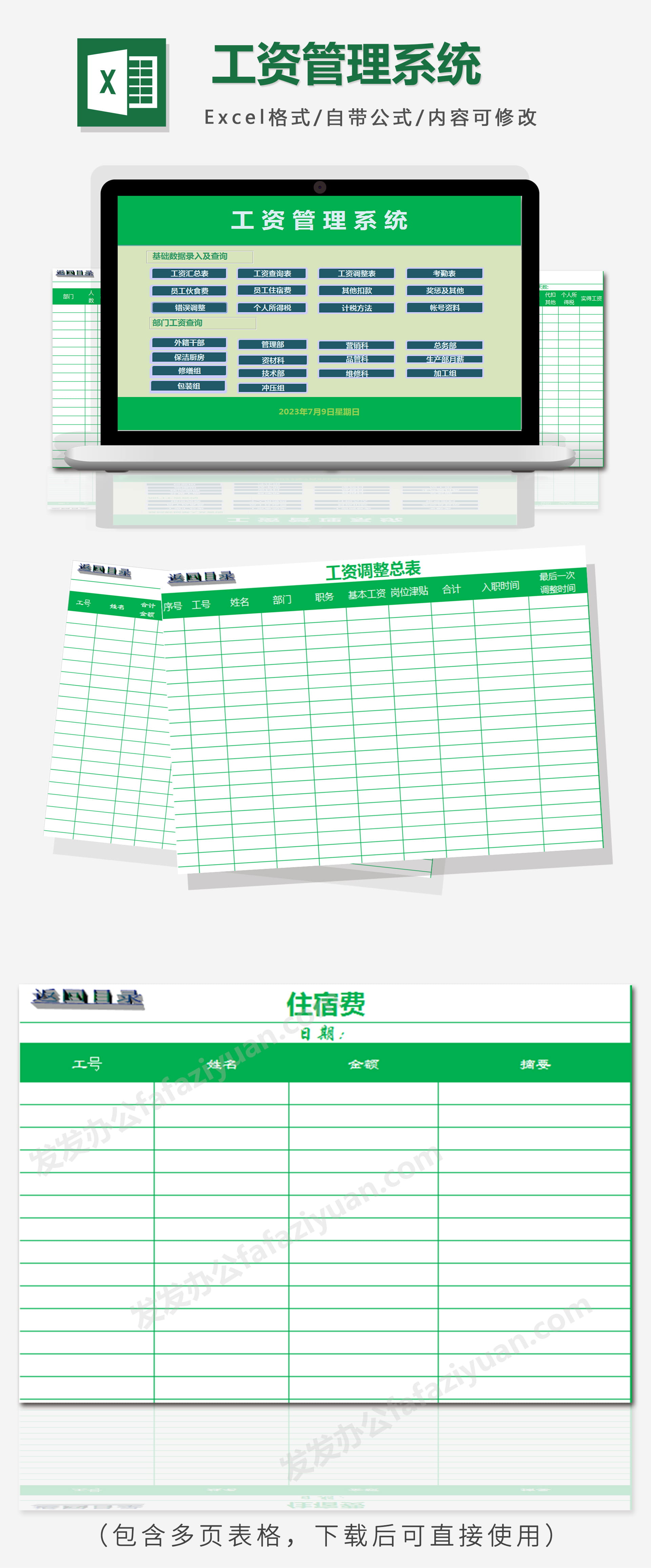 作品内容为工资管理系统, 格式为 xlsx, 大小1MB,下载后可直接使用, 请使用软件Excel打开, 作品中主体文字及图片可替换修改,文字修改可直接点击文本框进行编辑,图片更改可选中图片后单击鼠标右键选择更换图片,也可根据自身需求增加和删除作品中的内容, 源文件无水印, 欢迎使用发发资源库。