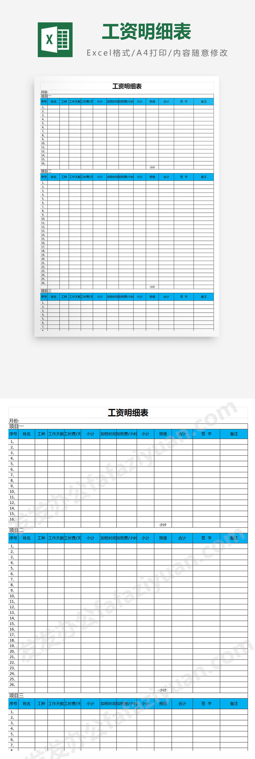 作品内容为工资明细表, 格式为 xlsx, 大小1MB,下载后可直接使用, 请使用软件Excel打开, 作品中主体文字及图片可替换修改,文字修改可直接点击文本框进行编辑,图片更改可选中图片后单击鼠标右键选择更换图片,也可根据自身需求增加和删除作品中的内容, 源文件无水印, 欢迎使用发发资源库。 资源下载此资源下载价格为8.8F币,VIP免费,请先登录