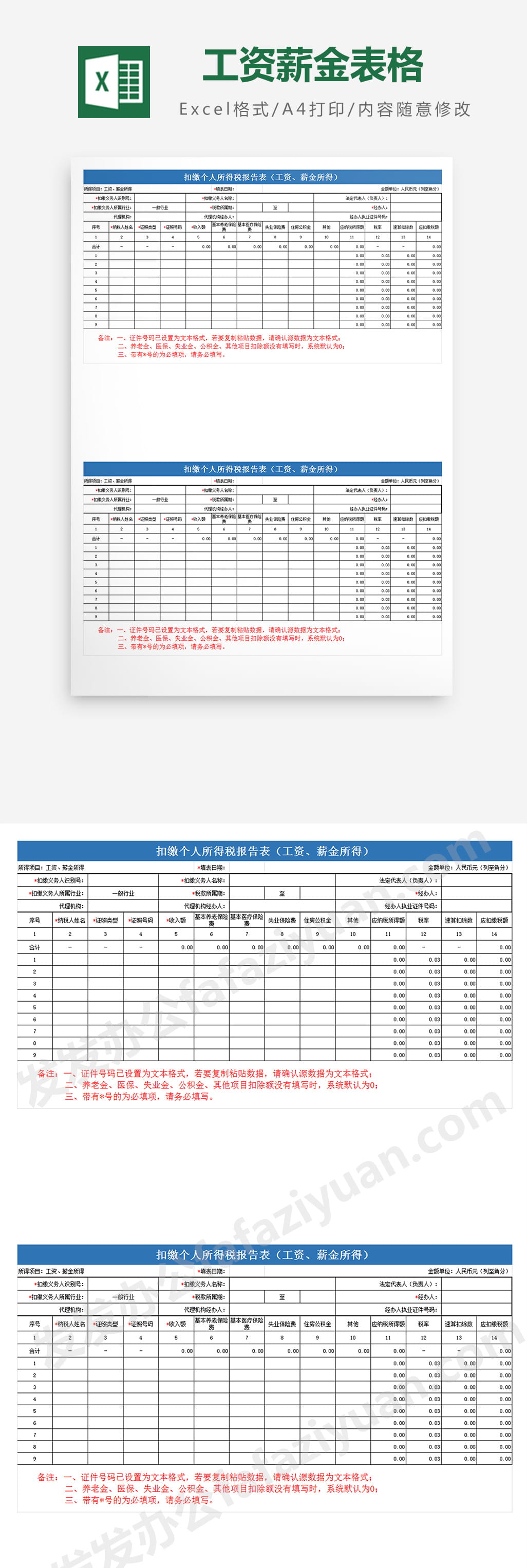 作品内容为工资薪金表格, 格式为 xlsx, 大小1MB,下载后可直接使用, 请使用软件Excel打开, 作品中主体文字及图片可替换修改,文字修改可直接点击文本框进行编辑,图片更改可选中图片后单击鼠标右键选择更换图片,也可根据自身需求增加和删除作品中的内容, 源文件无水印, 欢迎使用发发资源库。