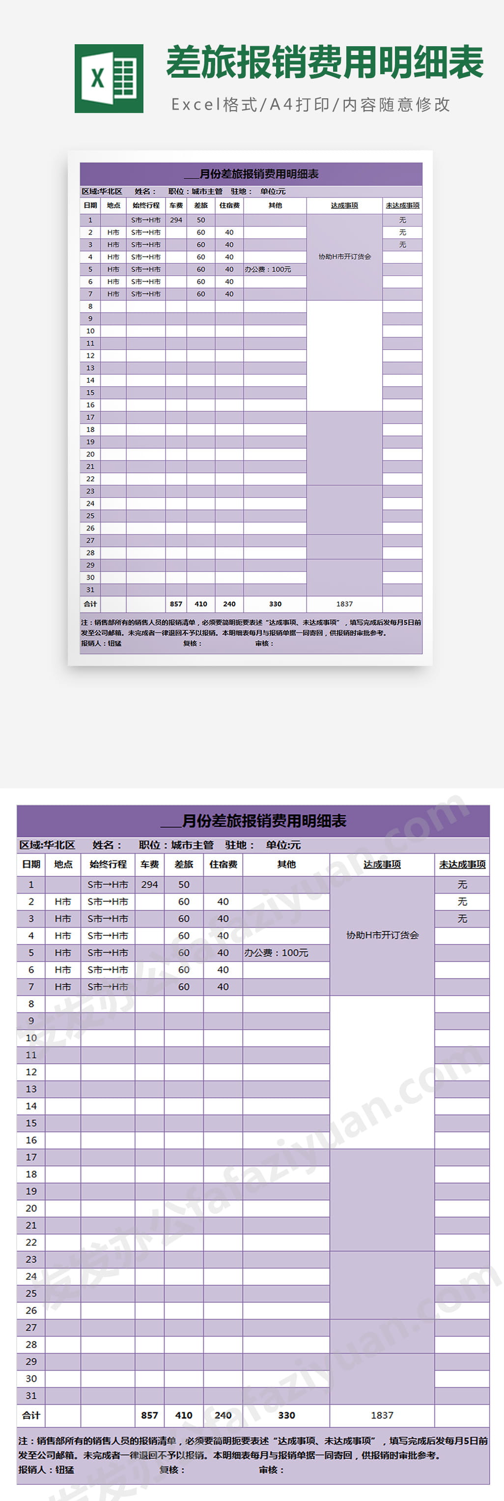 作品内容为差旅报销费用明细表, 格式为 xlsx, 大小1MB,下载后可直接使用, 请使用软件Excel打开, 作品中主体文字及图片可替换修改,文字修改可直接点击文本框进行编辑,图片更改可选中图片后单击鼠标右键选择更换图片,也可根据自身需求增加和删除作品中的内容, 源文件无水印, 欢迎使用发发资源库。 资源下载此资源下载价格为8.8F币,VIP免费,请先登录