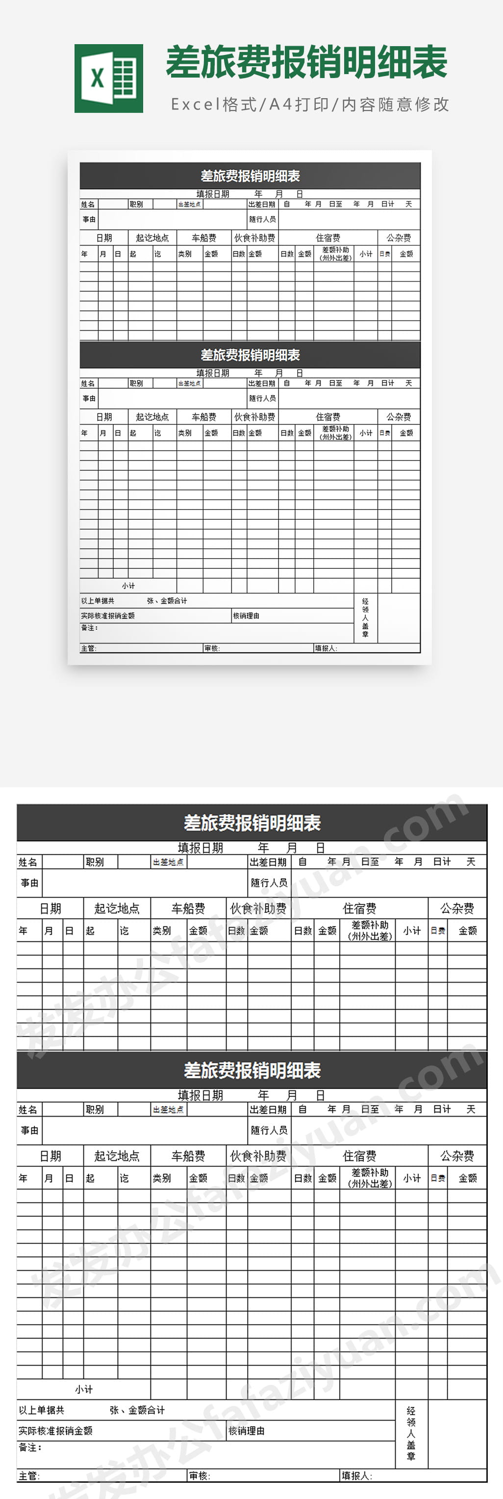 作品内容为差旅费报销明细表Excel表格, 格式为 xlsx, 大小1MB,下载后可直接使用, 请使用软件Excel打开, 作品中主体文字及图片可替换修改,文字修改可直接点击文本框进行编辑,图片更改可选中图片后单击鼠标右键选择更换图片,也可根据自身需求增加和删除作品中的内容, 源文件无水印, 欢迎使用发发资源库。 资源下载此资源下载价格为8.8F币,VIP免费,请先登录