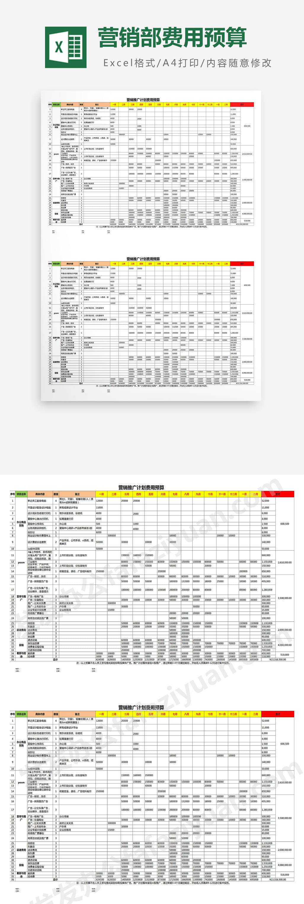 作品内容为营销部费用预算, 格式为 xlsx, 大小1MB,下载后可直接使用, 请使用软件Excel打开, 作品中主体文字及图片可替换修改,文字修改可直接点击文本框进行编辑,图片更改可选中图片后单击鼠标右键选择更换图片,也可根据自身需求增加和删除作品中的内容, 源文件无水印, 欢迎使用发发资源库。