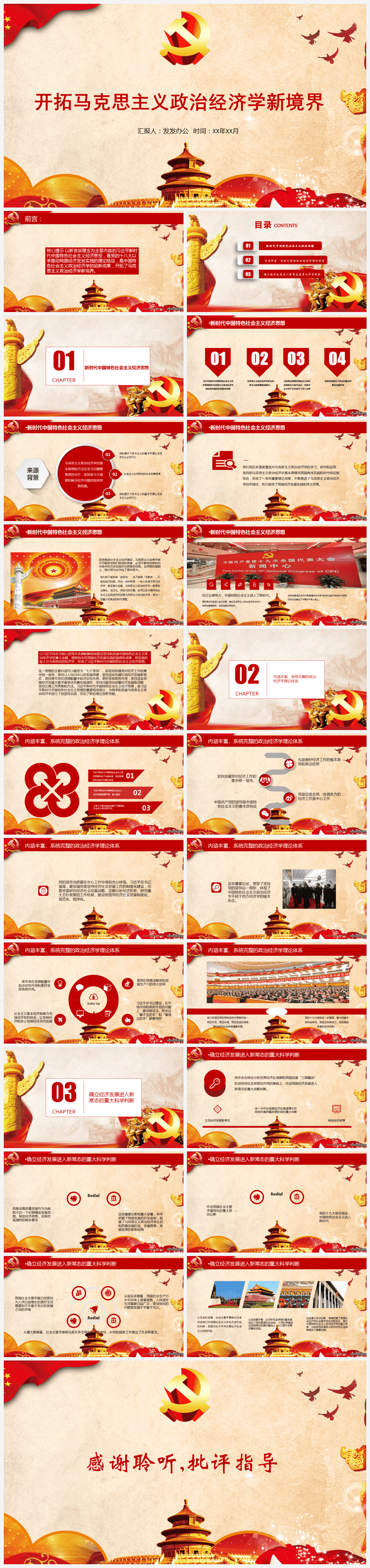 本作品内容为中国风红色开拓马克思主义政治经济学课件党政军警PPT模板{含内容}, 格式为 pptx, 大小39.1MB , 页数为24,比例自定义, 请使用软件PowerPoint打开, 作品中主体文字及图片可替换修改,文字修改可直接点击文本框进行编辑,图片更改可选中图片后单击鼠标右键选择更换图片,也可根据自身需求增加和删除作品中的内容, 源文件无水印, 欢迎使用发发资源库。