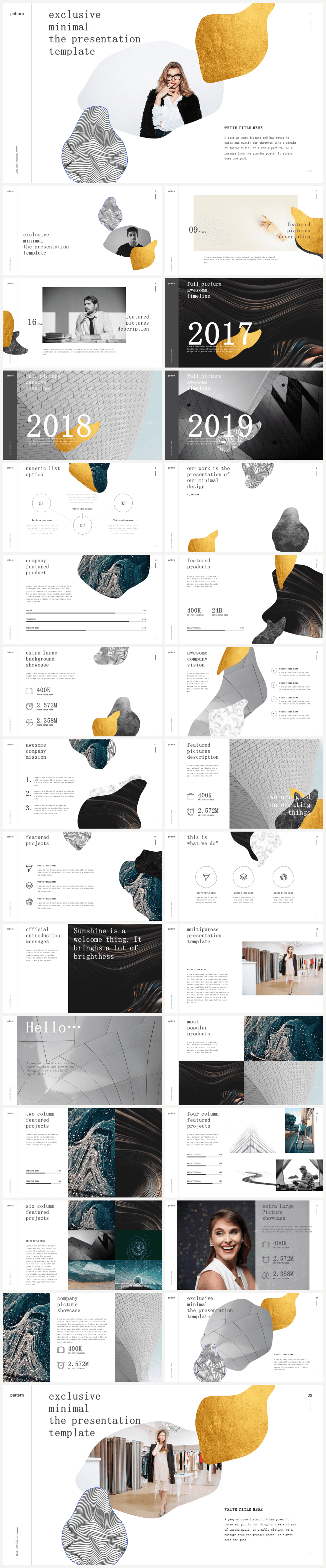 本作品内容为白色简约风服饰类产品发布产品介绍PPT模板。 格式为 pptx, 大小119MB, 页数为28,比例自定义, 请使用软件PowerPoint打开, 作品中主体文字及图片可替换修改,文字修改可直接点击文本框进行编辑,图片更改可选中图片后单击鼠标右键选择更换图片,也可根据自身需求增加和删除作品中的内容, 源文件无水印, 欢迎使用发发资源库。