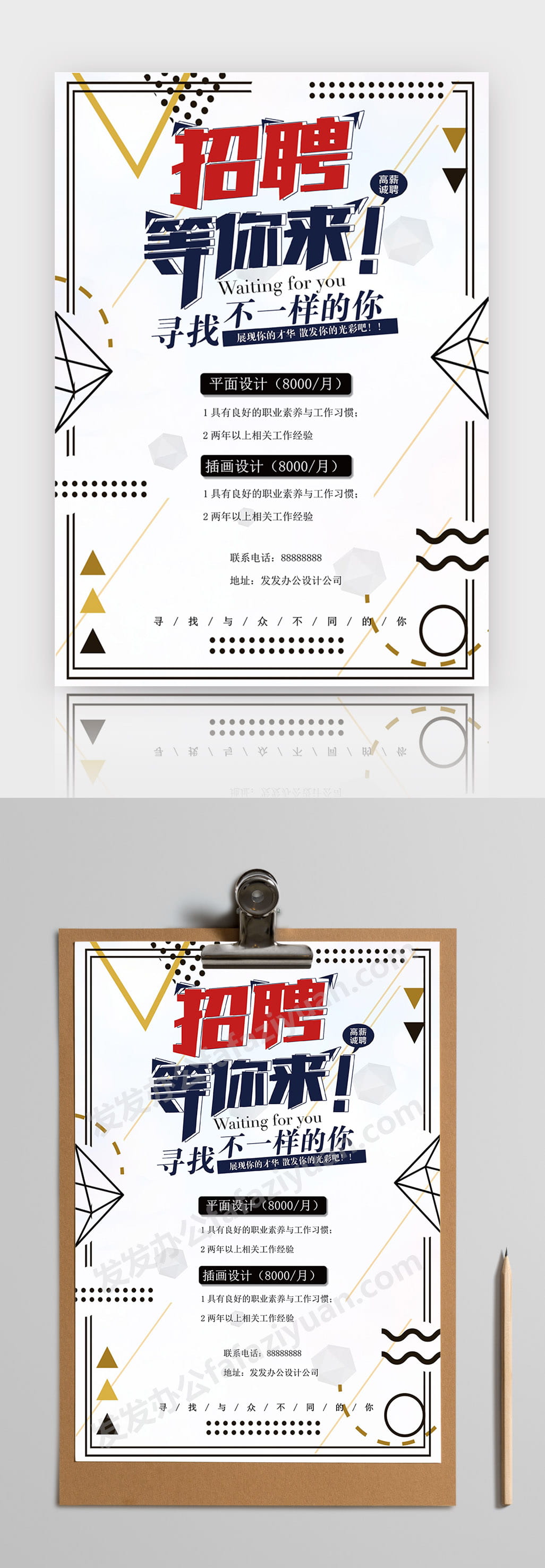 本作品内容为科技商务风等你来招聘海报单页Word模板, 格式为 docx, 大小0.65 MB, 页数为1, 请使用软件Word打开, 作品中主体文字及图片可替换修改,文字修改可直接点击文本框进行编辑,图片更改可选中图片后单击鼠标右键选择更换图片,也可根据自身需求增加和删除作品中的内容, 源文件无水印, 欢迎使用发发资源库。 资源下载此资源下载价格为8.8F币,VIP免费,请先登录