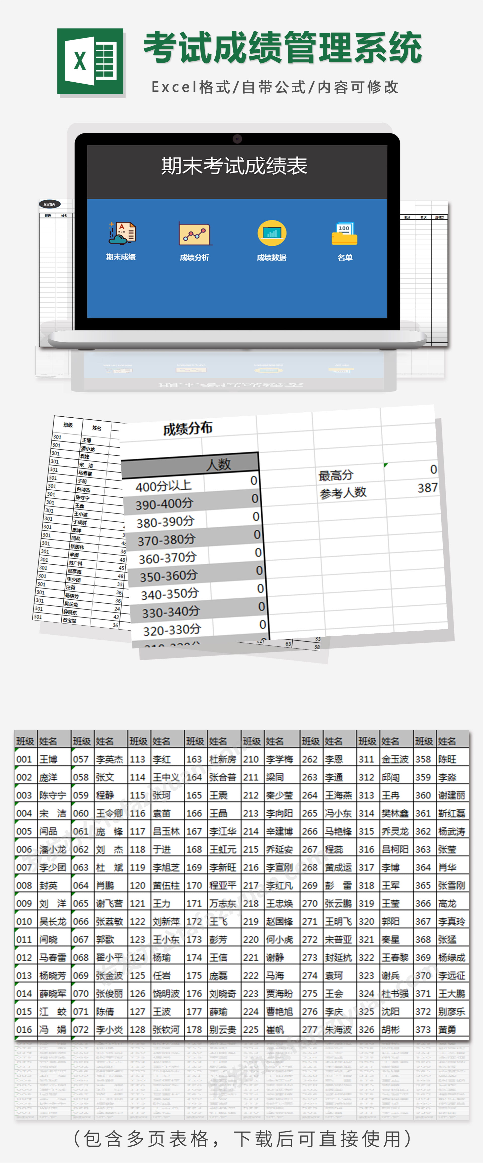 作品内容为中小学生期末考试成绩系统Excel表格模板, 格式为 xlsx, 大小0.086MB,包含多页表格,下载后可直接使用, 请使用软件Excel打开, 作品中主体文字及图片可替换修改,文字修改可直接点击文本框进行编辑,图片更改可选中图片后单击鼠标右键选择更换图片,也可根据自身需求增加和删除作品中的内容, 源文件无水印, 欢迎使用发发资源库。 资源下载此资源下载价格为8.8F币,VIP免费,请先登录