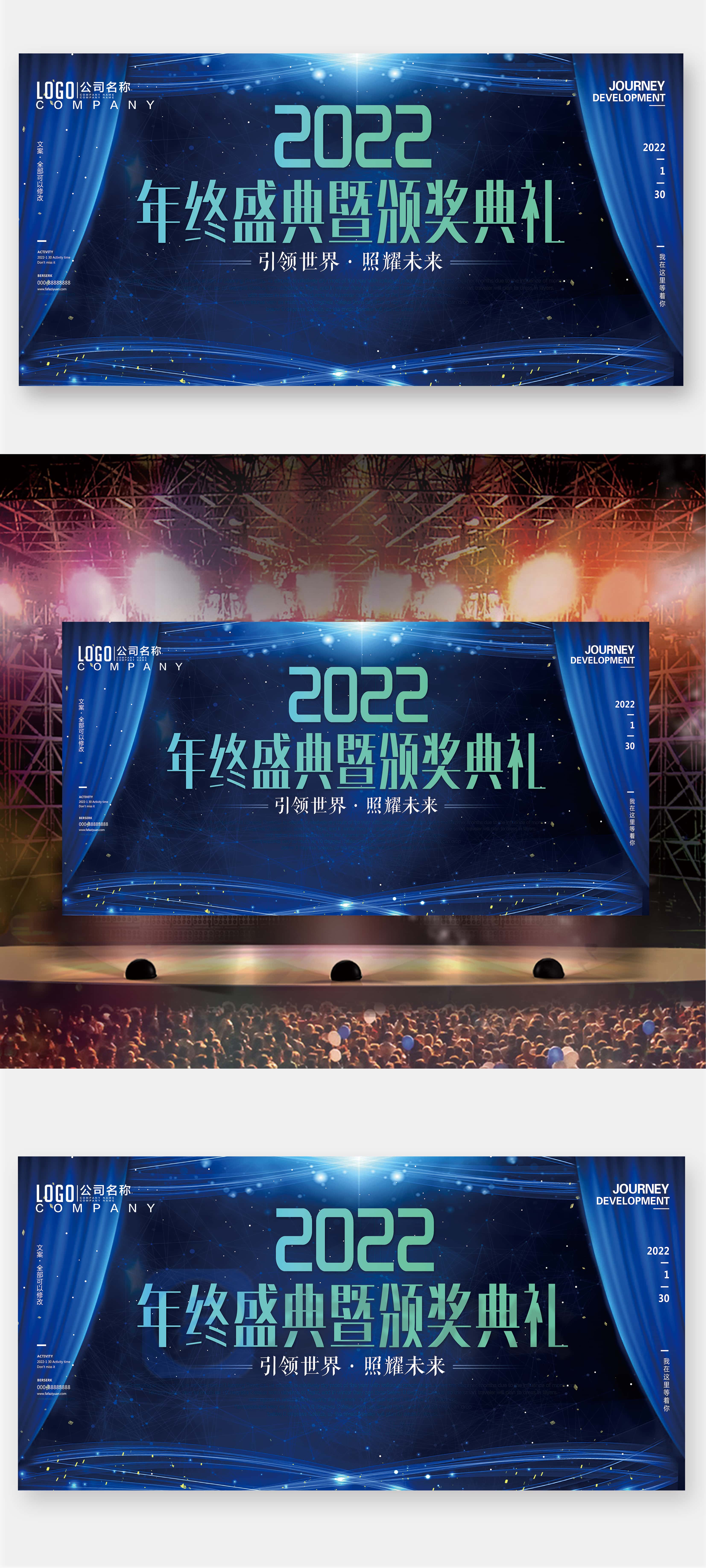 - 蓝色年终盛典暨颁奖典礼舞台背景海报PSD源文件免费下载 2022-06-02