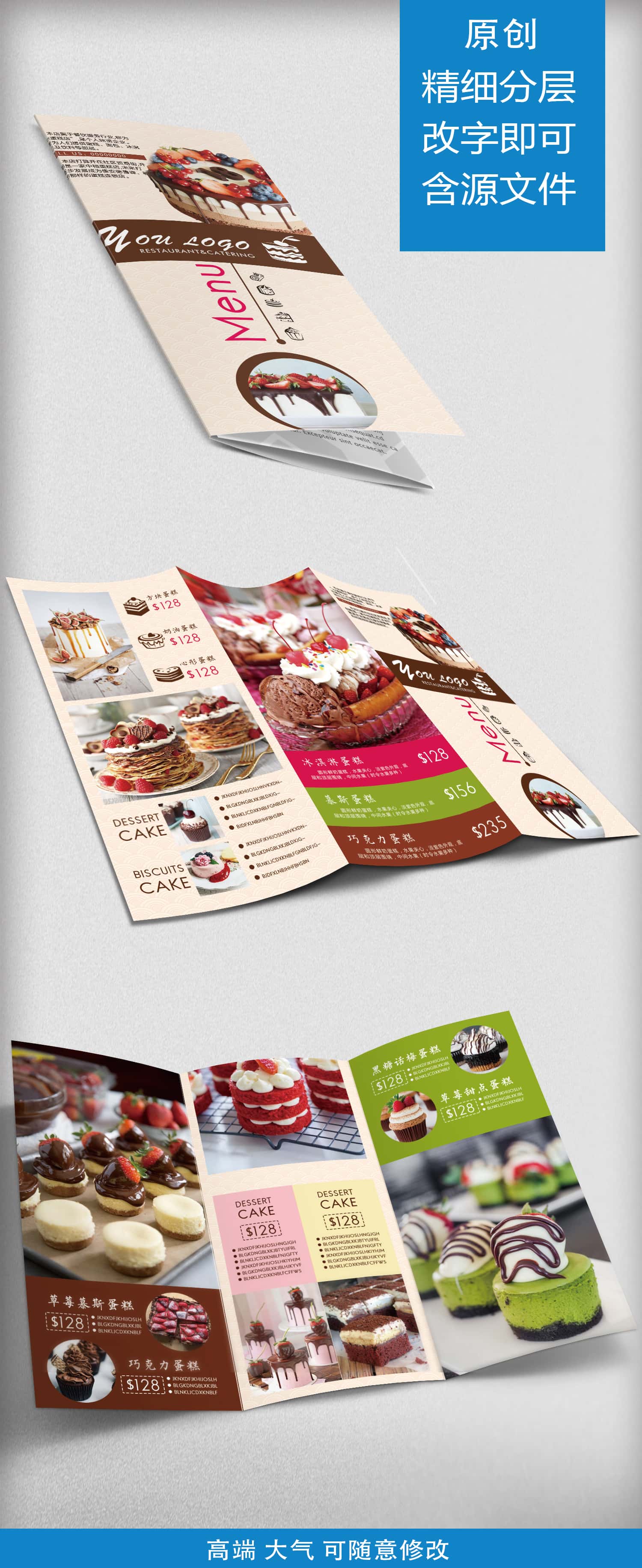 本作品内容为唯美蛋糕三折页设计PSD源文件{含字体}, 格式为 psd, 大小51.1 MB,像素为2339 x 1654,分辨率为200dpi,请使用软件PhotoShop打开, 作品中文字及图片可替换修改, 源文件无水印, 欢迎使用发发资源库。