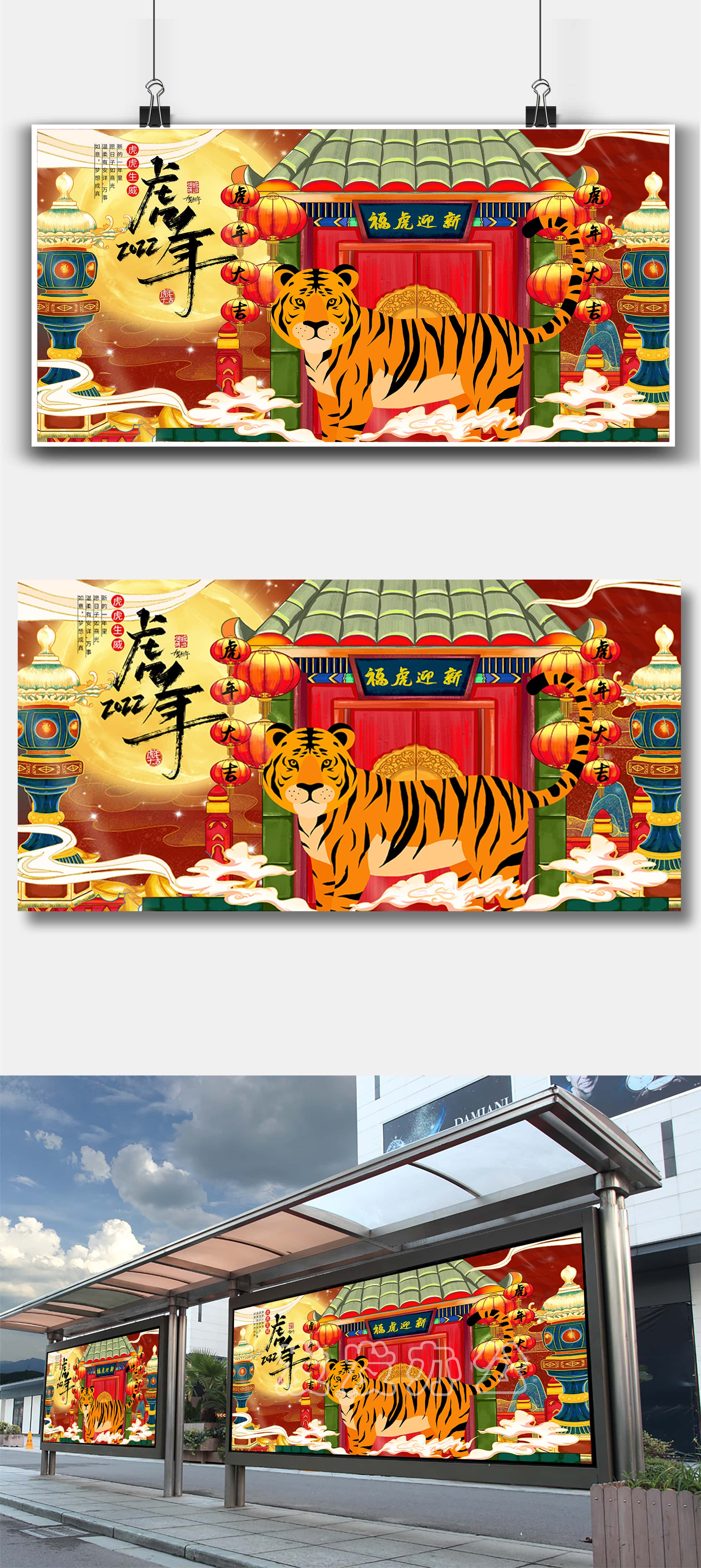 - 中国风寅虎送春虎年迎新年海报设计PSD源文件 2022-06-11