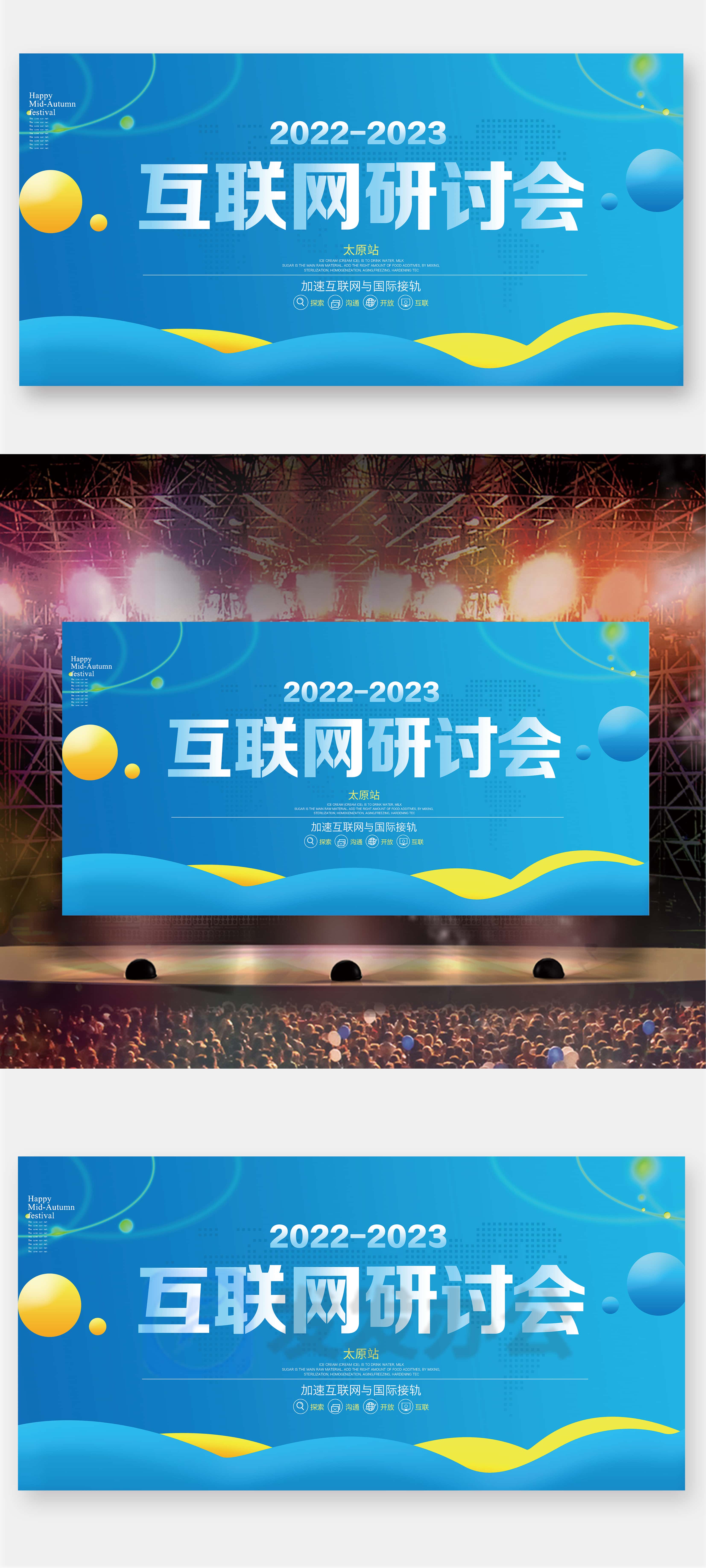 本作品内容为蓝色互联网研讨会背景海报PSD源文件, 格式为 psd, 大小19.8MB,请使用软件PhotoShop打开,像素为4724 x 2362,分辨率为100dpi ,作品中文字及图片可替换修改,源文件无水印,欢迎使用发发资源库。