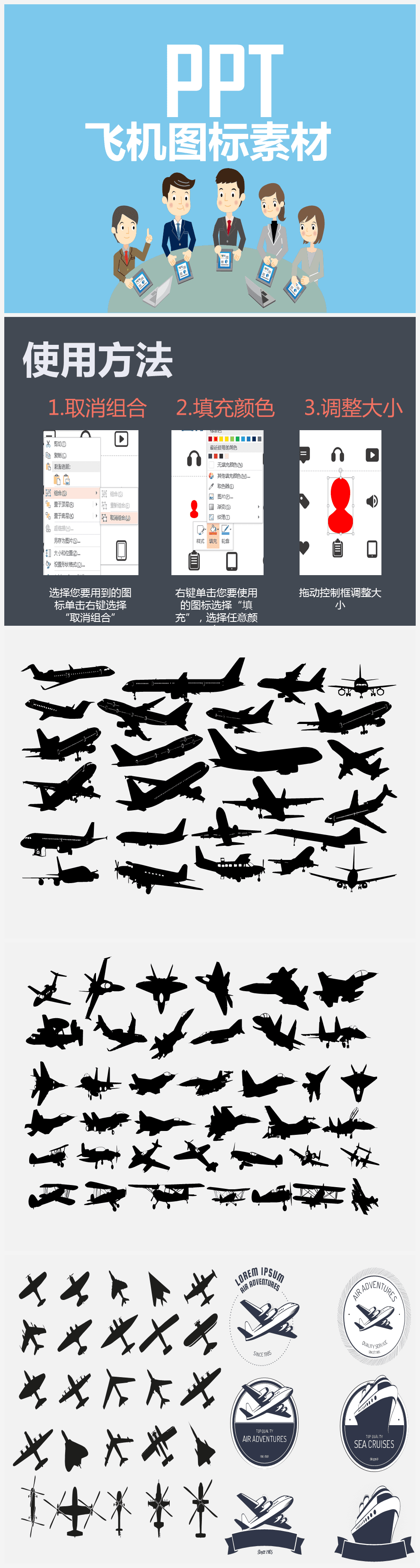 作品内容为各类飞机型号PPT小图标PPT素材, 格式为 pptx,大小0.69MB, 页数为5,请使用软件PowerPoint打开,作品中PNG图片为免抠图片,源文件无水印,可以直接使用,欢迎使用发发资源库。 资源下载此资源下载价格为8.8F币,VIP免费,请先登录