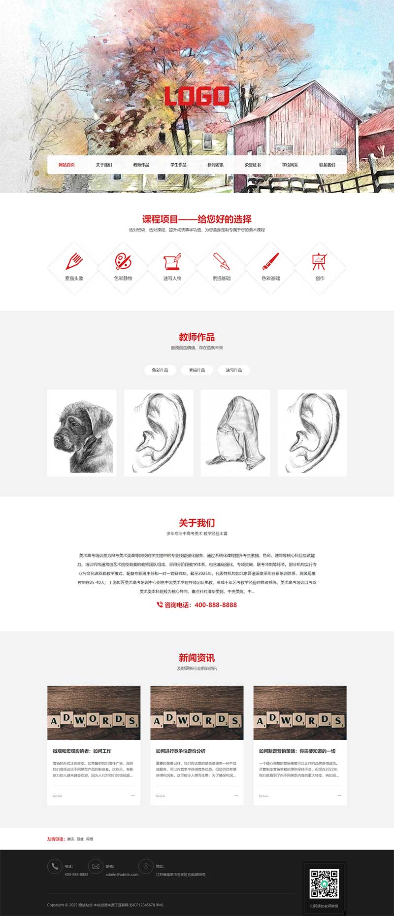 美术培训机构网站模板_画室画廊网站源码免费下载 – 专业艺术建站方案,提供手机端自适应美术培训机构网站模板与画室画廊网站源码免费下载,专业艺术建站方案适配搜索引擎优化,界面美观、操作简单,助力艺术机构快速搭建高转化官网,轻松获取精准学员流量!