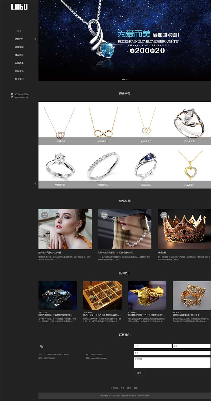 高端珠宝首饰网站模板_PbootCMS 响应式手机端_奢侈品源码可商用