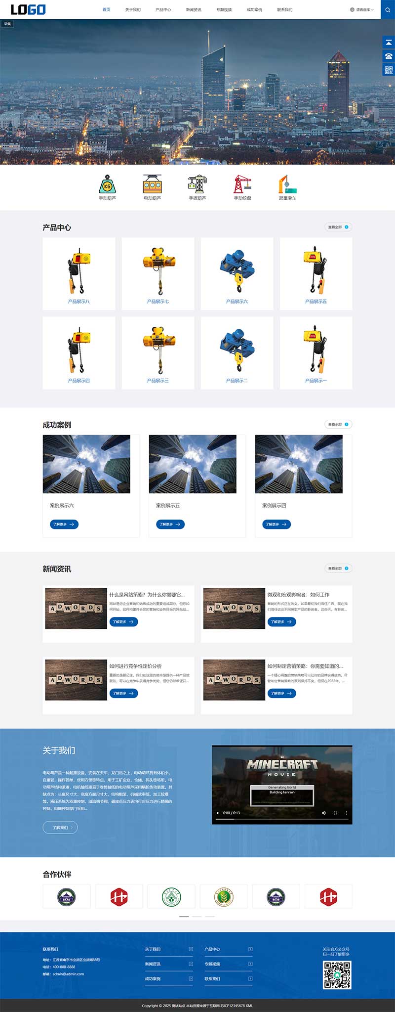 自适应手机端外贸模板_中英文双语电动葫芦源码免费获取_易部署