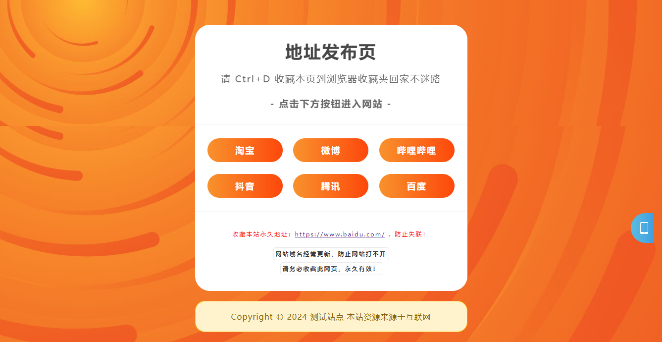 PbootCMS内核开发的网站模板,该模板适用于网址发布页、引导页网站等企业,当然其他行业也可以做,只需要把文字图片换成其他行业的即可;