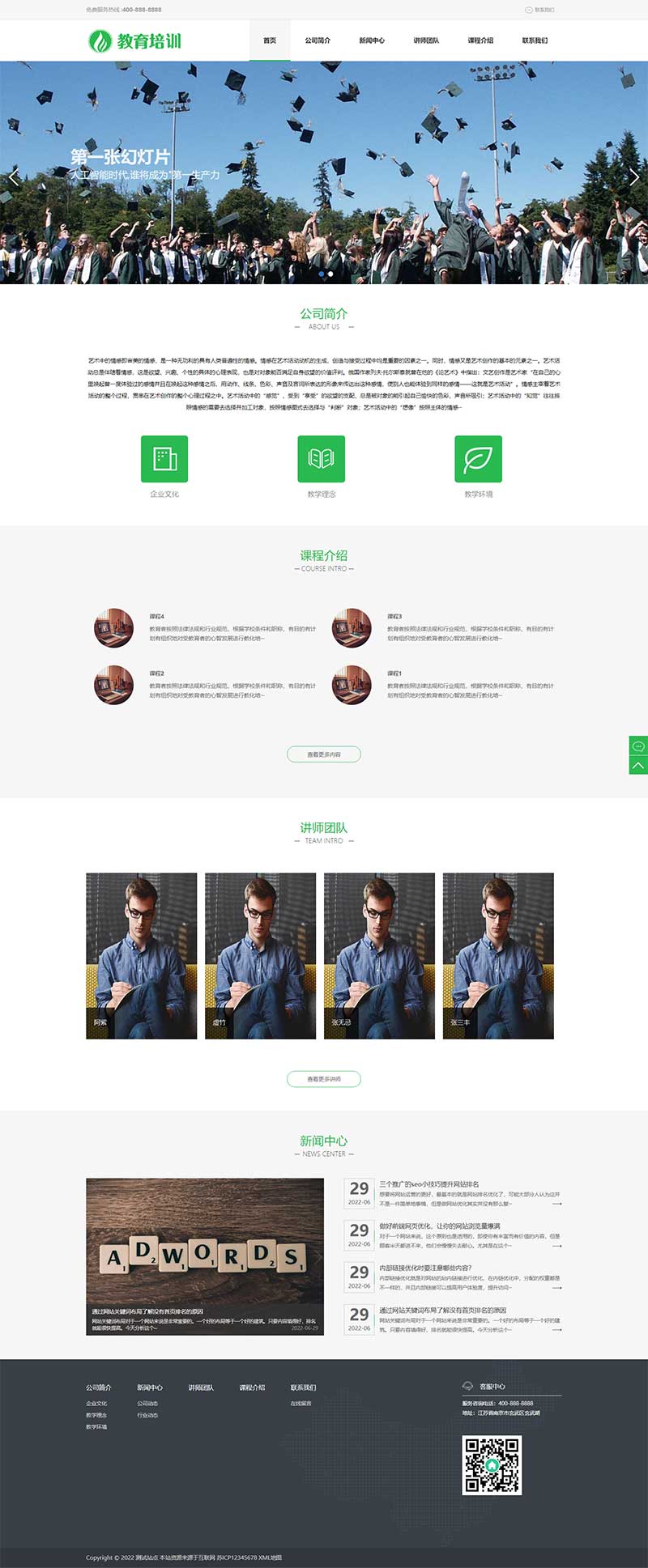 - 清新绿色主调 + 简约专业视觉设计 + PC+WAP 双端自适应结构,融合前沿技术打造高端流畅体验,适配各类终端设备,完美呈现教育机构的专业实力、课程优势及品牌调性,贴合教育培训行业氛围,提升学员与家长的信任感;