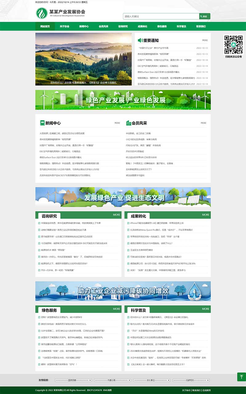 - 清新绿色主调 + 简约专业视觉设计 + 自适应手机端结构,融合前沿技术打造贴合绿色产业的浏览体验,适配各类终端设备,完美呈现绿色产业协会的环保理念与专业实力,贴合行业调性,提升用户好感度与信任感;