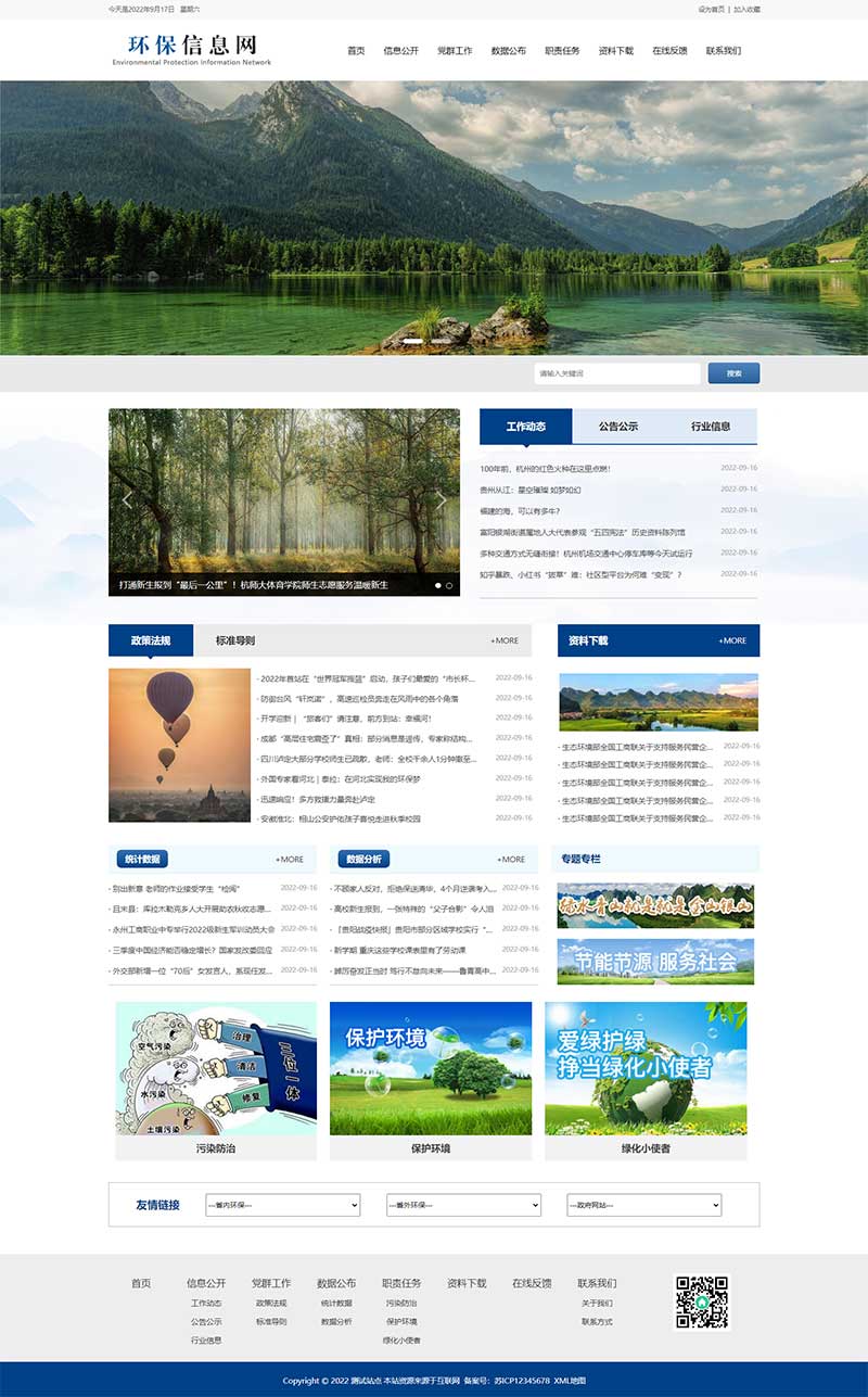 - 纯手工书写 DIV+CSS 代码,结构清晰规范、精简无冗余,无多余杂乱代码,加载速度更快,同时便于后期根据环保协会、资讯平台需求做二次开发调整(如添加资讯分类、政策专栏、环保案例展示、会员注册、留言互动等);