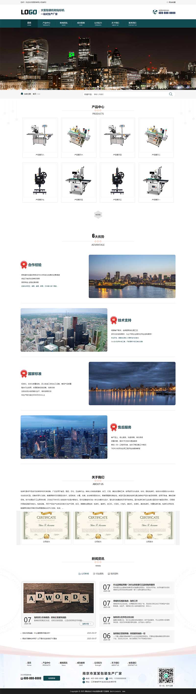 模板全面支持自适应手机端,同时兼容 PC 端、平板等各类终端,同一后台集中管理,双端数据即时同步更新,操作简单易上手,企业工作人员无需专业技术基础,就能快速熟练操作。贴合采购商、生产线负责人、工程合作方的使用习惯 —— 用户手机端可快速查看包装机、贴标机详情,查询设备核心参数,一键咨询产品报价、对接合作事宜、咨询设备售后,操作简单高效,适配现场快速查询、紧急对接的需求;电脑端可详细查看设备技术参数、自动化配置、工程应用案例、生产实力、合作流程,界面规整专业、重点突出,既凸显企业的研发与生产实力,也能全面展示包装机、贴标机的精准性与高效性,快速提升客户信任感。还附带完整测试数据,助力快速熟悉网站功能,一键开启建站流程,大幅缩短官网上线周期,节省时间与人力成本。