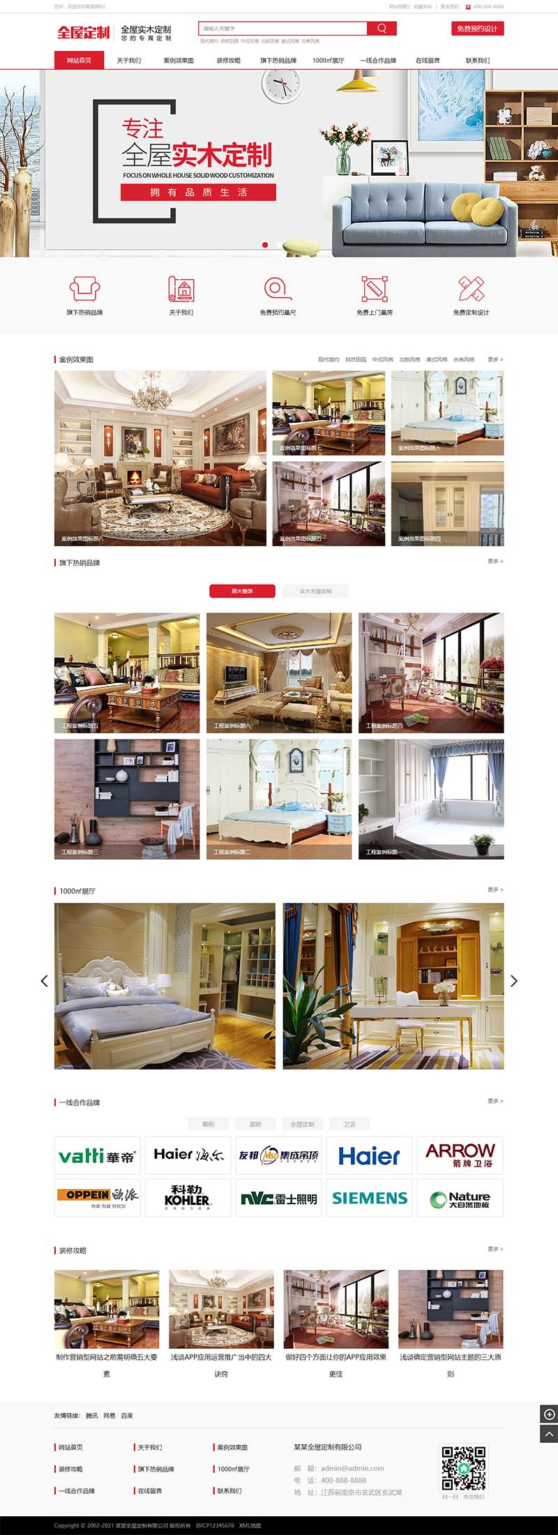 完美契合智能家居销售、家具建材批发零售、红色家装设计定制、家装案例展示、定制方案洽谈、企业动态发布、产品售后维保、家装施工介绍等核心业务场景,全方位呈现企业产品优势、设计实力、服务水平,助力企业吸引有智能家居采购、家装设计定制需求的目标客户,提升品牌行业影响力。