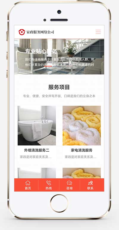 - 手工书写DIV+CSS、代码精简无冗余,加载速度更快,适配搜索引擎爬虫抓取,便于后期根据橙色家政服务企业业务需求做二次开发调整(如新增在线预约表单、服务套餐展示、保洁人员介绍模块);