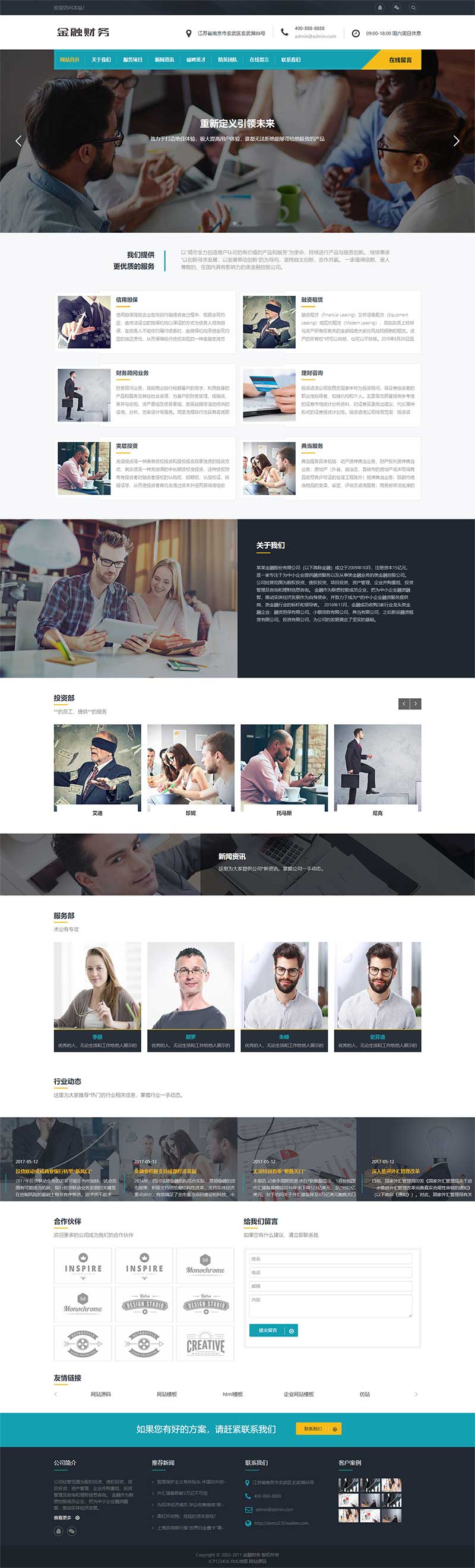 - 后台直接修改联系方式、传真、邮箱、地址等,同时可便捷更新投资产品、风控信息、金融资讯、机构动态,修改更加方便,无需专业技术,适配金融投资管理机构、财务金融企业日常运营需求。