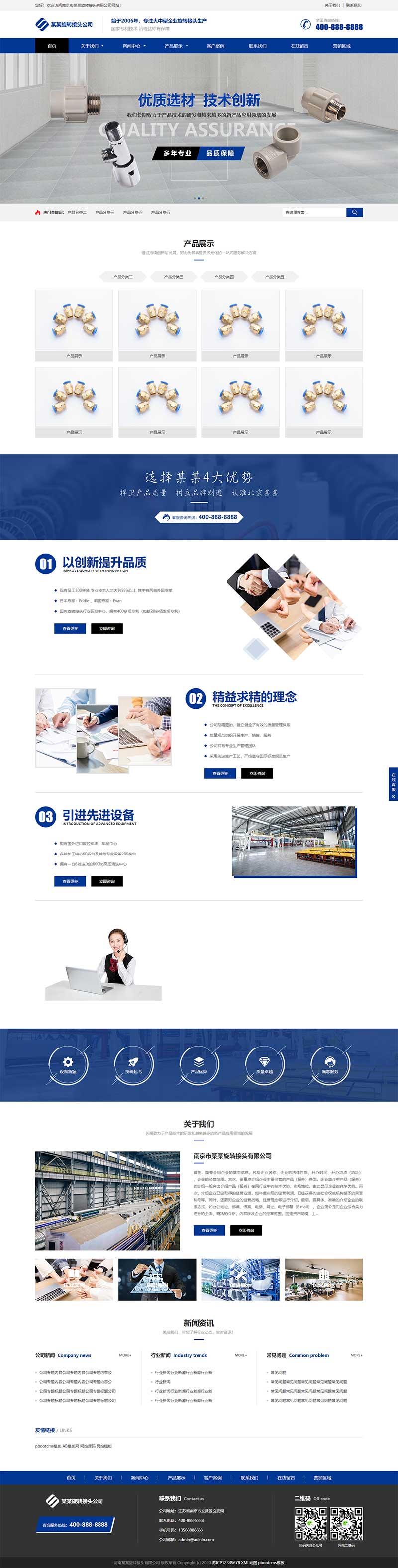 本模板基于PbootCMS优质内核开发,采用经典蓝色营销型工业设计风格,页面布局简洁大气、层次分明,视觉观感专业稳重,高度贴合五金机械、五金配件行业精工制造、品质过硬、规格齐全的行业调性,专为五金机械生产厂家、五金配件加工、工业五金供货、五金制品销售企业打造营销型官方官网。