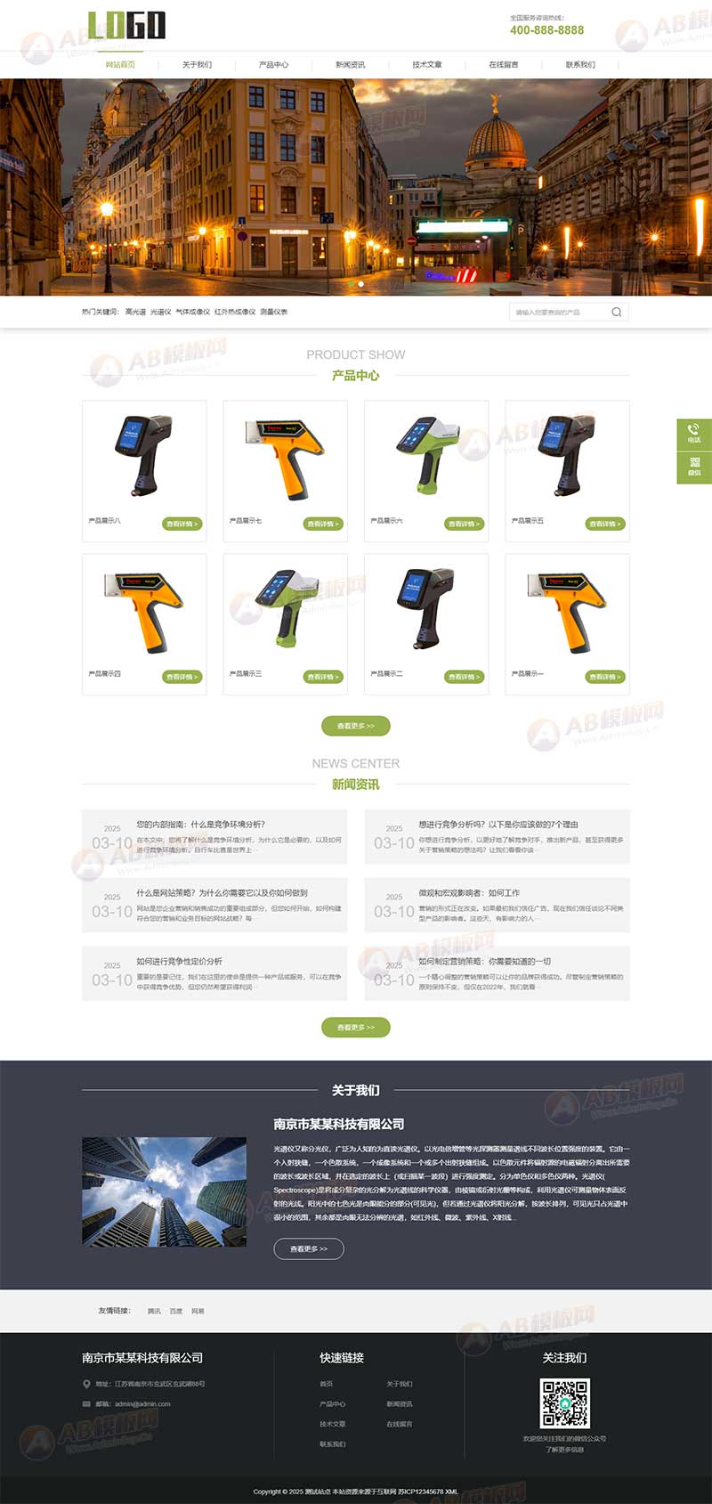 模板自带三级栏目架构,功能布局完善立体,搭配完整的科学仪器行业演示测试数据,一键安装即可快速上线使用,无需复杂二次开发。网站包含产品中心、案例展示、技术资料、企业介绍、资质荣誉、行业资讯、在线咨询、留言报价等完整功能模块,完全满足精密仪器企业品牌宣传、产品曝光、客户咨询、订单转化需求。