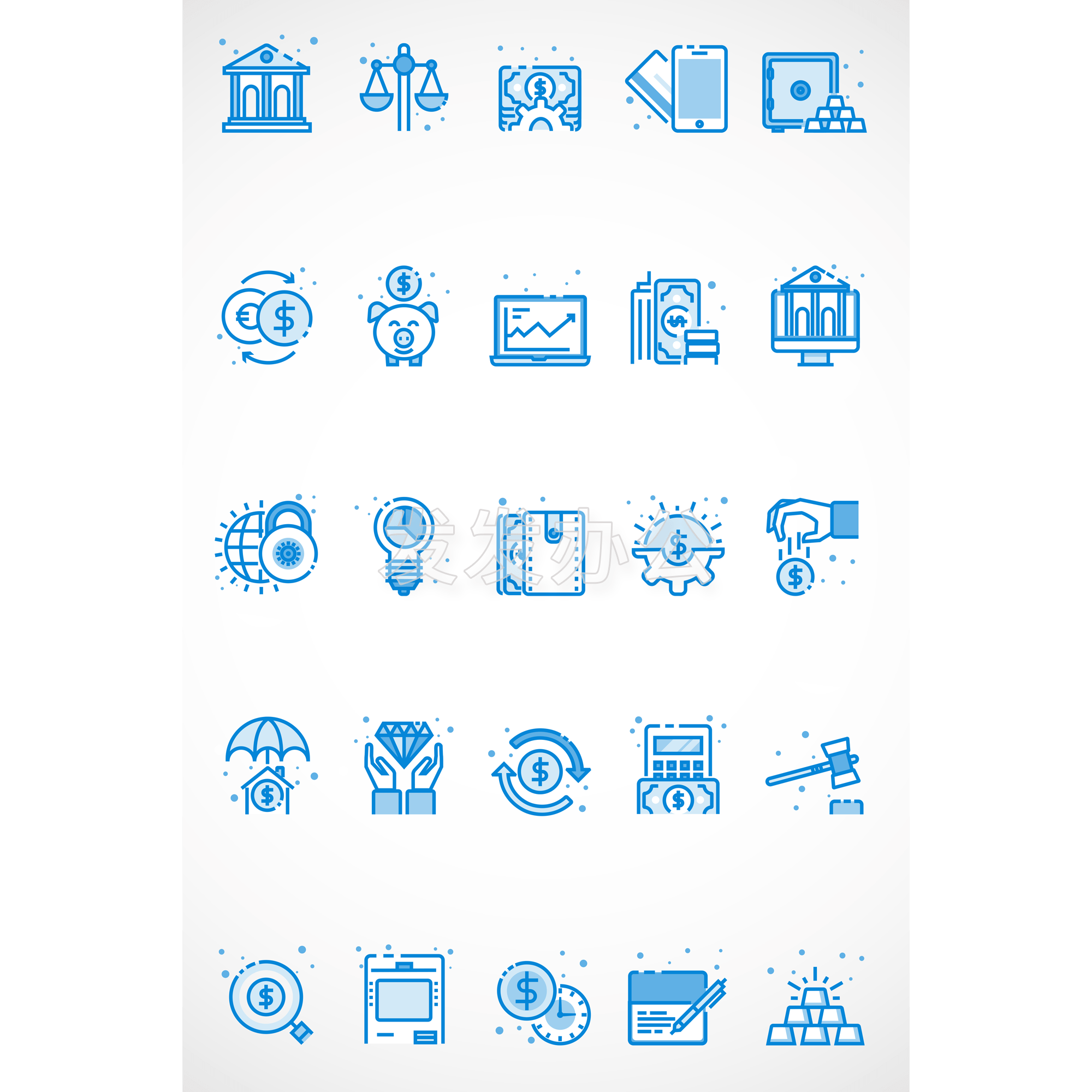 本作品内容为蓝色金融商务图标元素大全免抠素材免费下载, 格式为 ai,图片尺寸为4275 x 6433, 请使用软件Illustrator打开, 源文件无水印, 欢迎使用发发资源库。