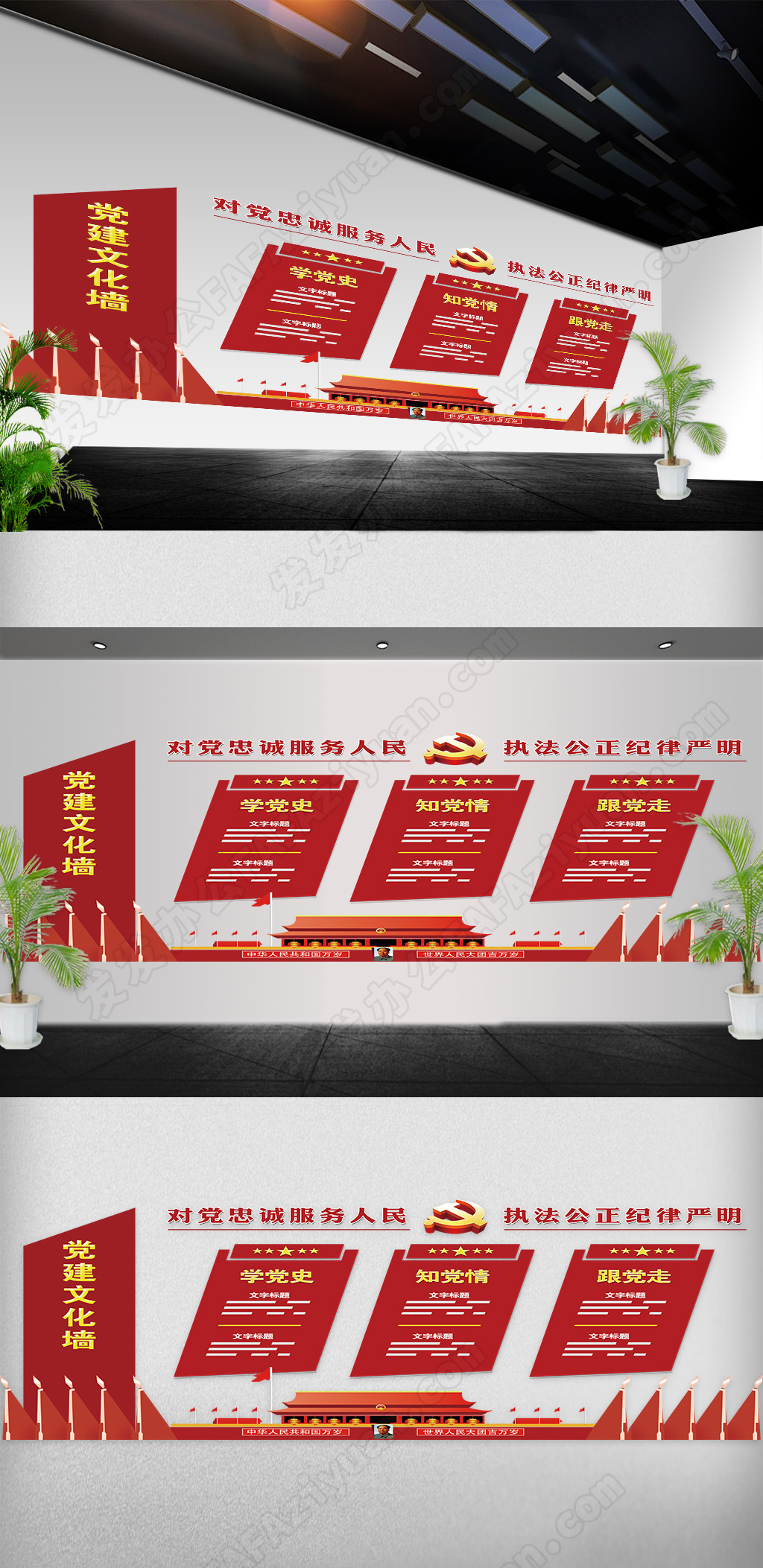 本作品内容为红色天安门背景精品通用党建文化墙展板, 格式为psd, 大小27.7 MB, 请使用软件PhotoShop打开,作品中文字及图片可替换修改, 源文件无水印, 欢迎使用发发资源库。