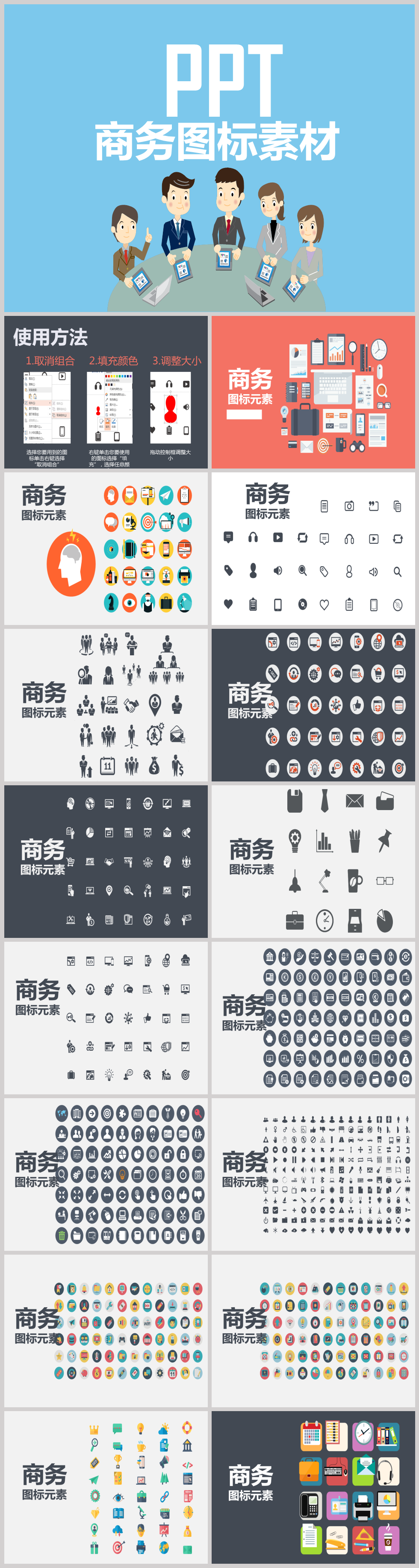 本作品内容为商务图标元素PPT小图标PPT素材, 格式为 pptx,大小2.1MB, 页数为17,请使用软件PowerPoint打开,作品中PNG图片为免抠图片,源文件无水印,可以直接使用,欢迎使用发发资源库。