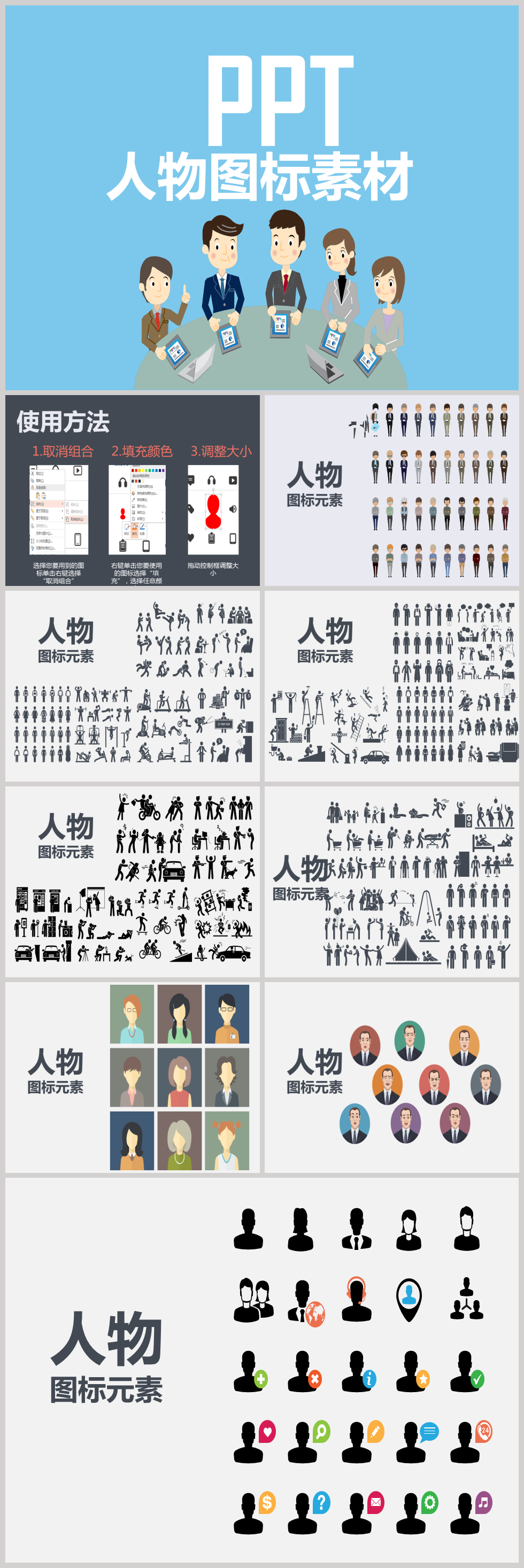 本作品内容为人物图标元素PPT小图标PPT素材, 格式为 pptx,大小2.47MB, 页数为10,请使用软件PowerPoint打开,作品中PNG图片为免抠图片,源文件无水印,可以直接使用,欢迎使用发发资源库。