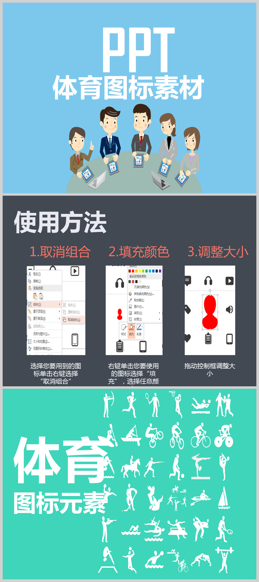 本作品内容为体育图标元素PPT小图标PPT素材, 格式为 pptx,大小0.28MB, 页数为3,请使用软件PowerPoint打开,作品中PNG图片为免抠图片,源文件无水印,可以直接使用,欢迎使用发发资源库。