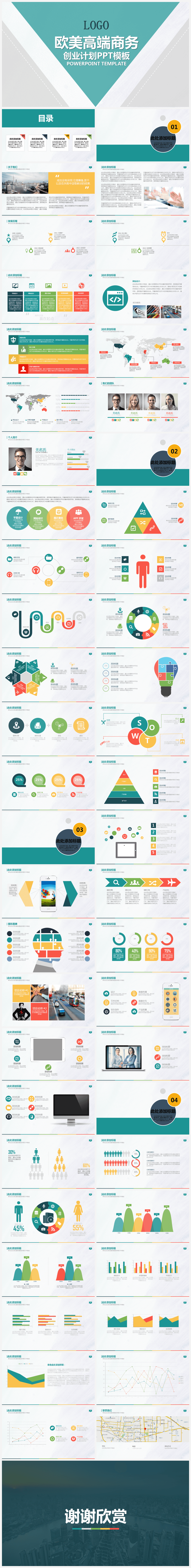 本作品内容为欧美风高端商务创业计划书PPT模板免费下载。 格式为 pptx, 大小7MB, 页数为52,比例自定义, 请使用软件PowerPoint打开, 作品中主体文字及图片可替换修改,文字修改可直接点击文本框进行编辑,图片更改可选中图片后单击鼠标右键选择更换图片,也可根据自身需求增加和删除作品中的内容, 源文件无水印, 欢迎使用发发资源库。 资源下载此资源仅限注册用户下载,请先登录