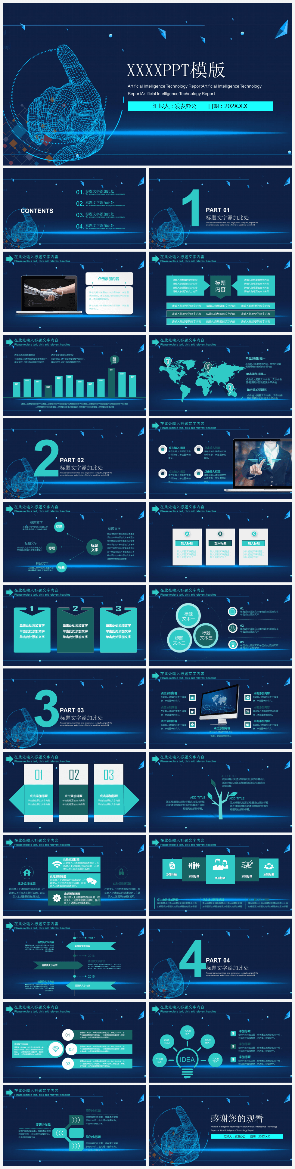 本作品内容为蓝色欧美风互联网大数据PPT模板。 格式为 pptx, 大小20MB, 页数为25,比例自定义, 请使用软件PowerPoint打开, 作品中主体文字及图片可替换修改,文字修改可直接点击文本框进行编辑,图片更改可选中图片后单击鼠标右键选择更换图片,也可根据自身需求增加和删除作品中的内容, 源文件无水印, 欢迎使用发发资源库。