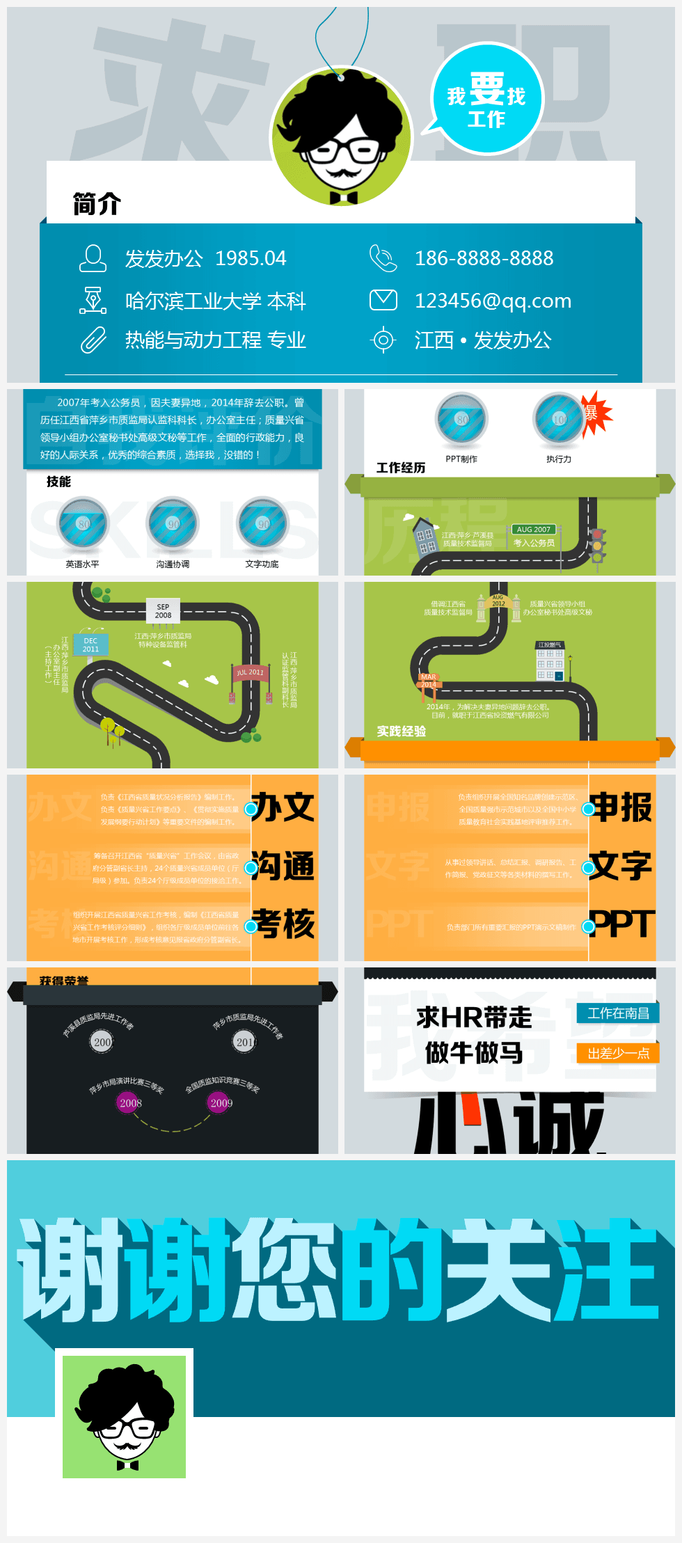 本作品内容为个性欧美风求职简历我要工作PPT模板。 格式为 pptx, 大小1MB, 页数为10,比例自定义, 请使用软件PowerPoint打开, 作品中主体文字及图片可替换修改,文字修改可直接点击文本框进行编辑,图片更改可选中图片后单击鼠标右键选择更换图片,也可根据自身需求增加和删除作品中的内容, 源文件无水印, 欢迎使用发发资源库。 资源下载此资源下载价格为8.8F币,VIP免费,请先登录