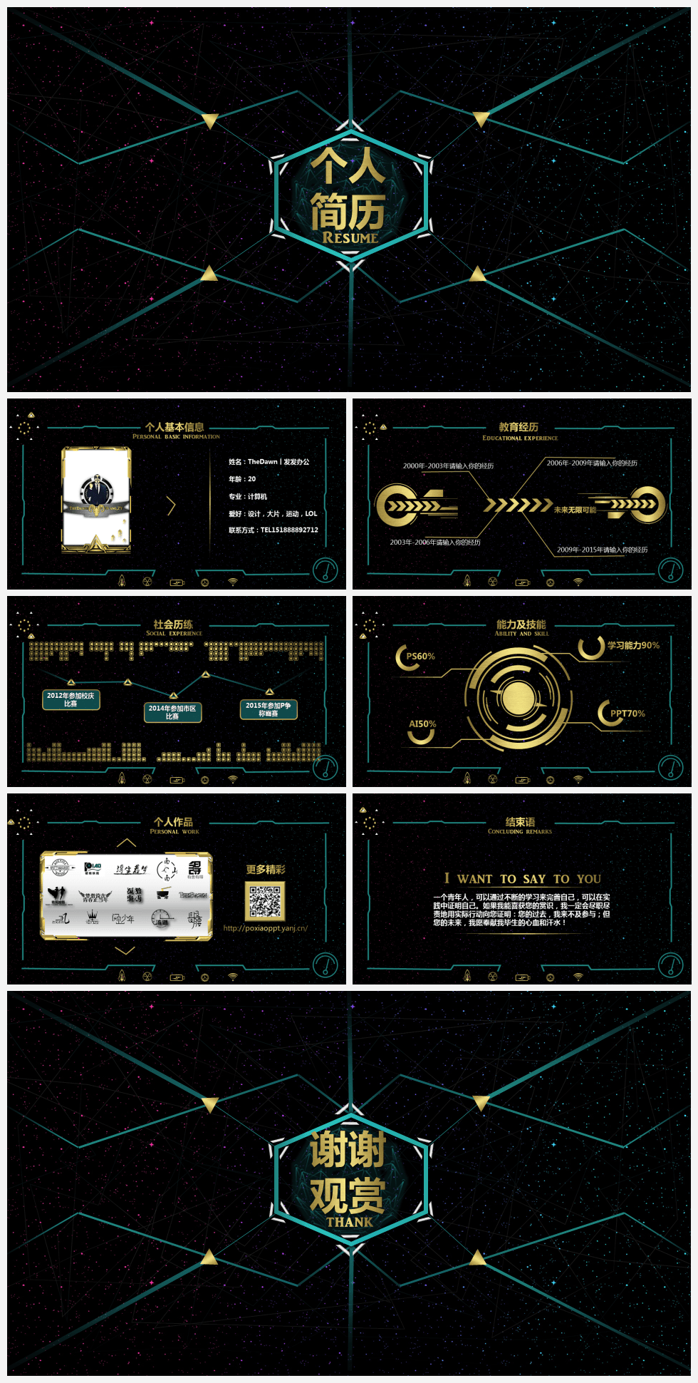 - 创意欧美风多边形个人简历通用PPT模板 2022-11-26