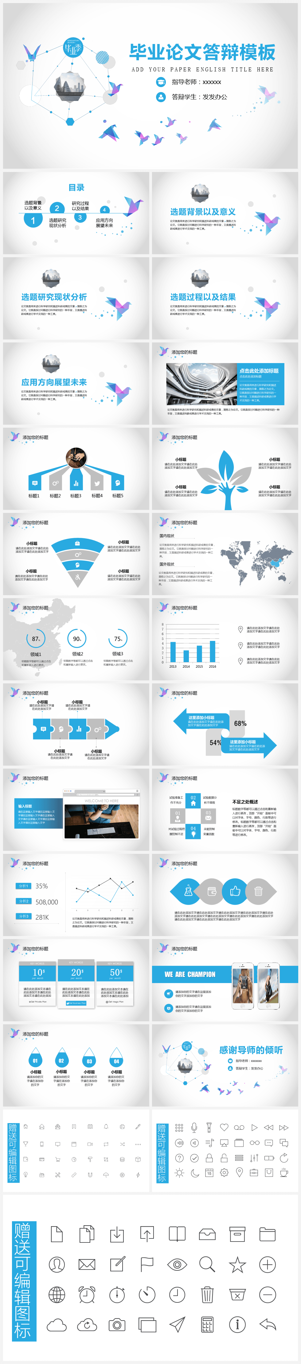 本作品内容为创意简约风毕业论文答辩PPT模板免费下载。 格式为 pptx, 大小19MB, 页数为26,比例自定义, 请使用软件PowerPoint打开, 作品中主体文字及图片可替换修改,文字修改可直接点击文本框进行编辑,图片更改可选中图片后单击鼠标右键选择更换图片,也可根据自身需求增加和删除作品中的内容, 源文件无水印, 欢迎使用发发资源库。 资源下载此资源仅限注册用户下载,请先登录