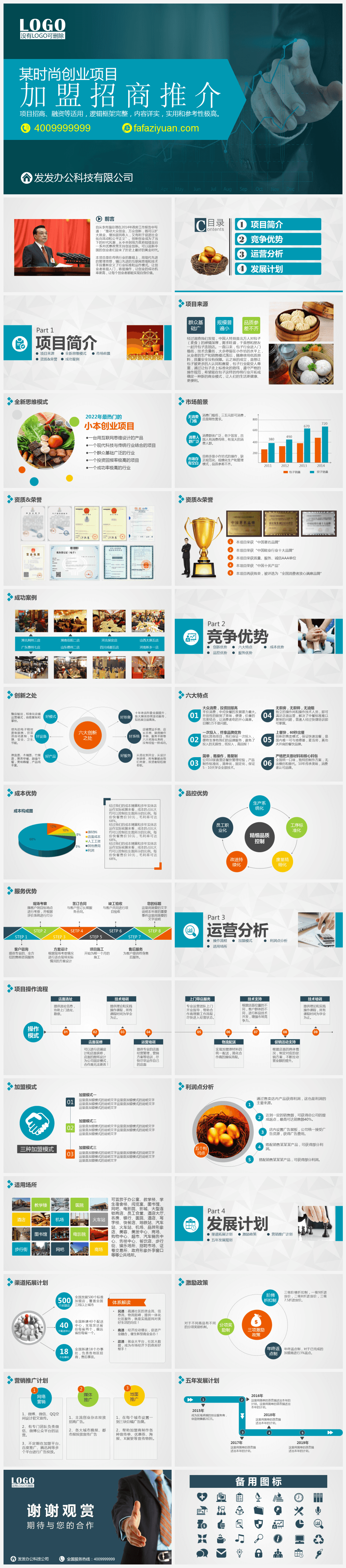 本作品内容为蓝色欧美风创业项目加盟招商推介会PPT模板。 格式为 pptx, 大小11MB, 页数为29,比例自定义, 请使用软件PowerPoint打开, 作品中主体文字及图片可替换修改,文字修改可直接点击文本框进行编辑,图片更改可选中图片后单击鼠标右键选择更换图片,也可根据自身需求增加和删除作品中的内容, 源文件无水印, 欢迎使用发发资源库。 资源下载此资源下载价格为8.8F币,VIP免费,请先登录
